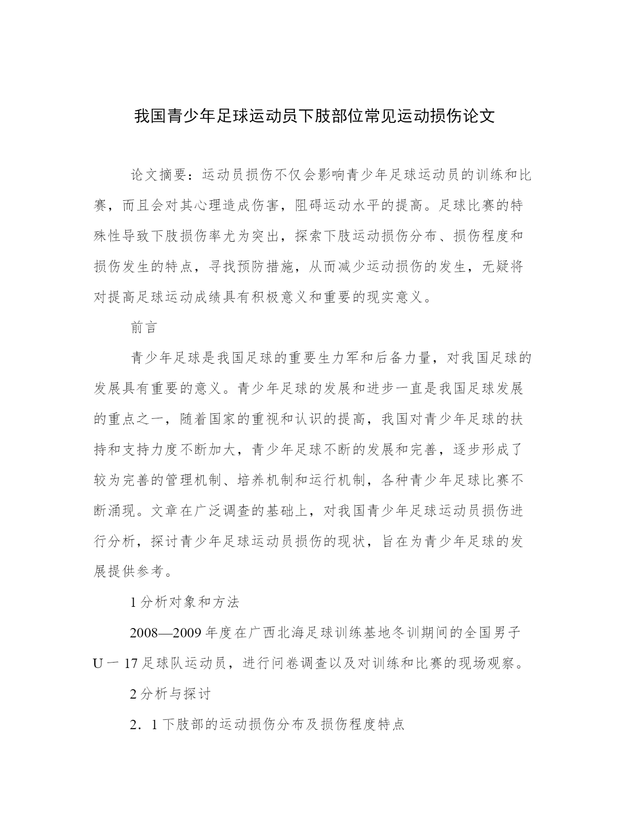 我国青少年足球运动员下肢部位常见运动损伤论文.docx