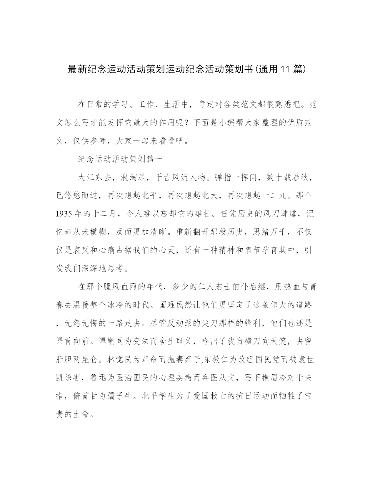 最新纪念运动活动策划运动纪念活动策划书(通用11篇).docx
