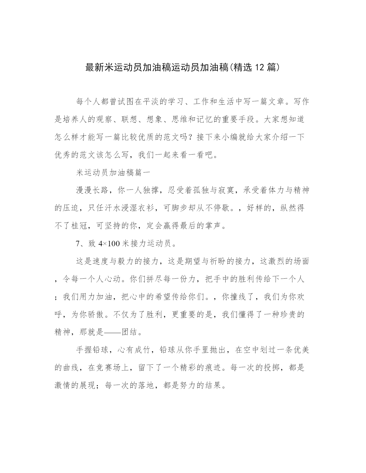 最新米运动员加油稿运动员加油稿(精选12篇).docx
