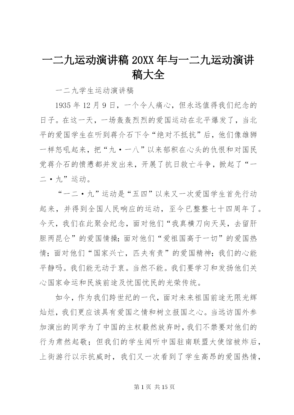 7一二九运动演讲稿某年与一二九运动演讲稿大全.docx