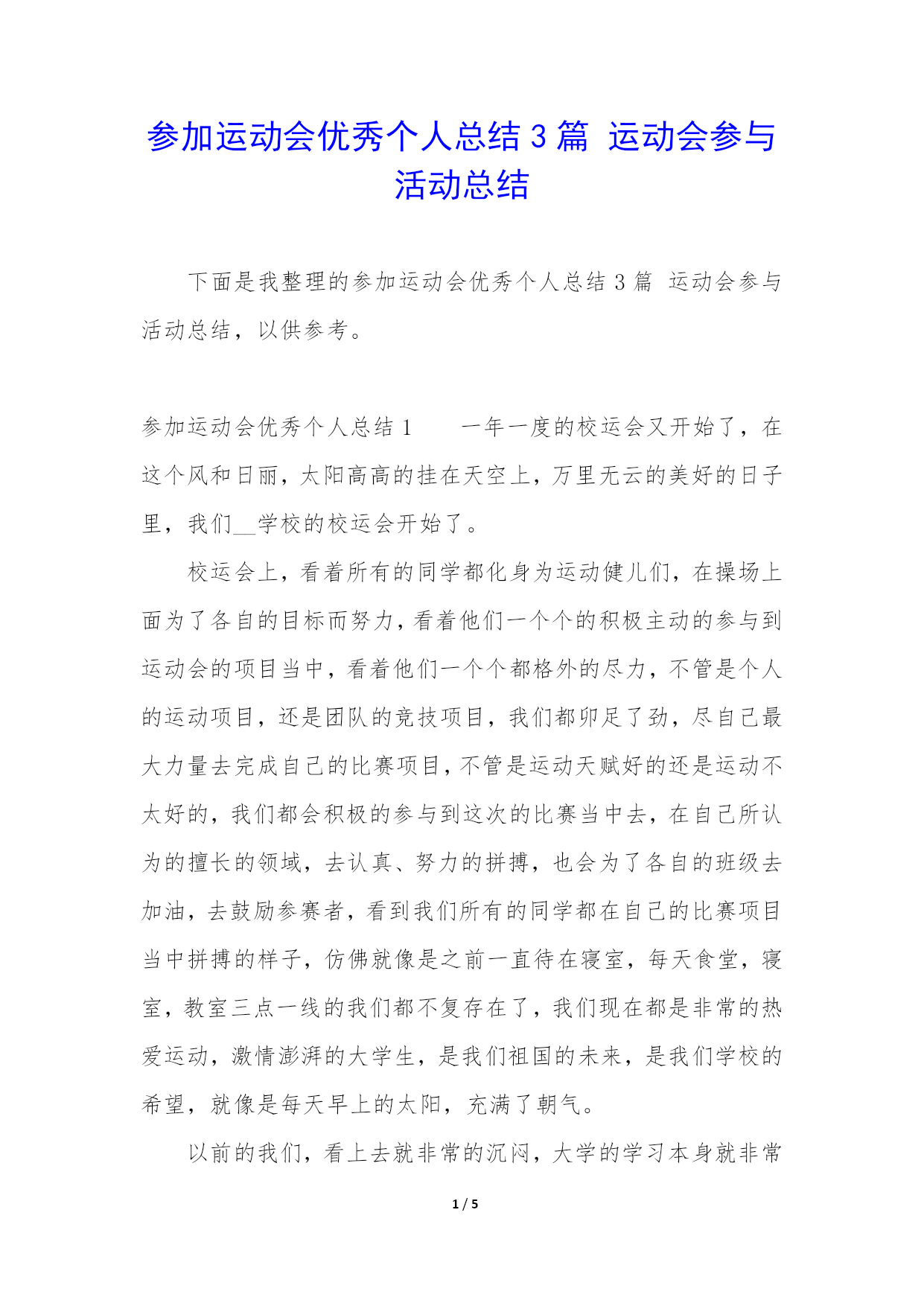 参加运动会优秀个人总结3篇-运动会参与活动总结.docx
