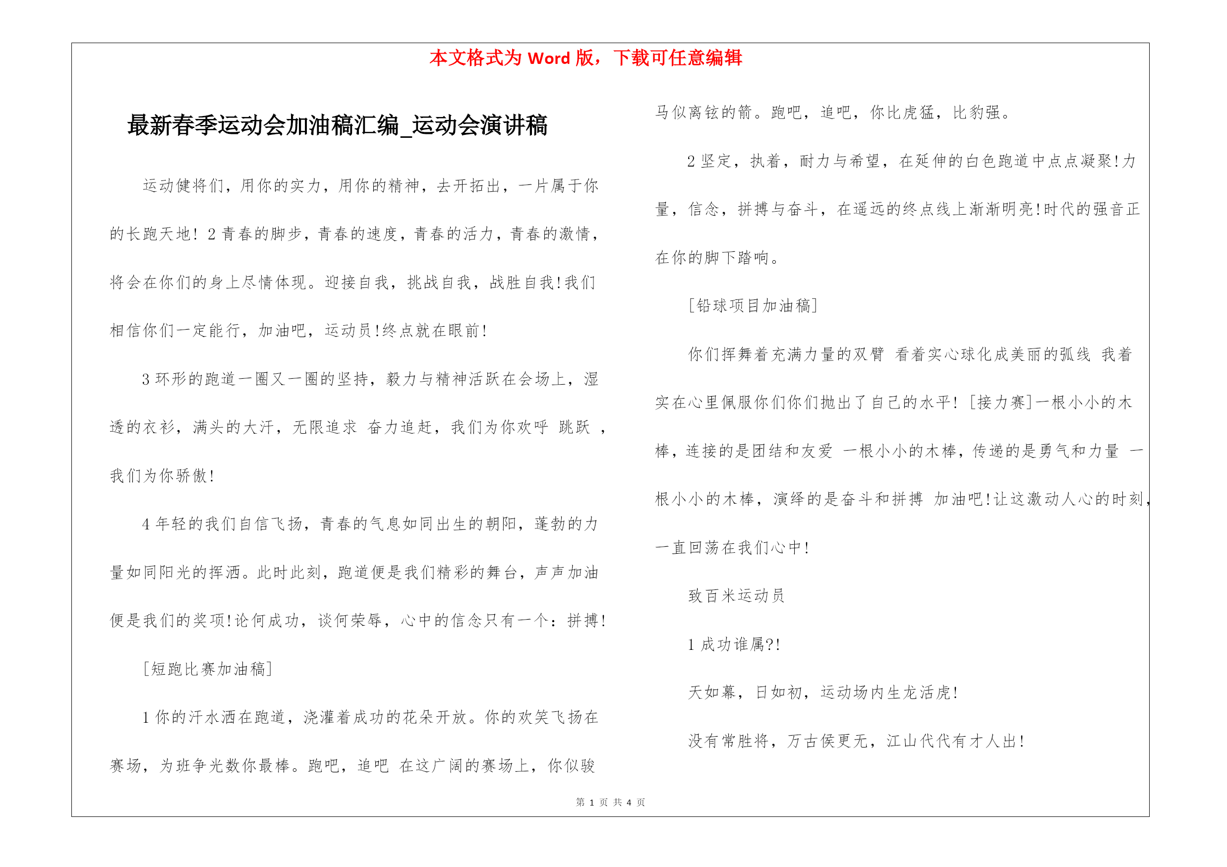 最新春季运动会加油稿汇编-运动会演讲稿.docx