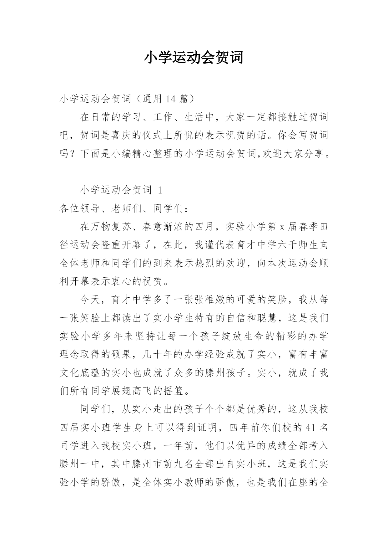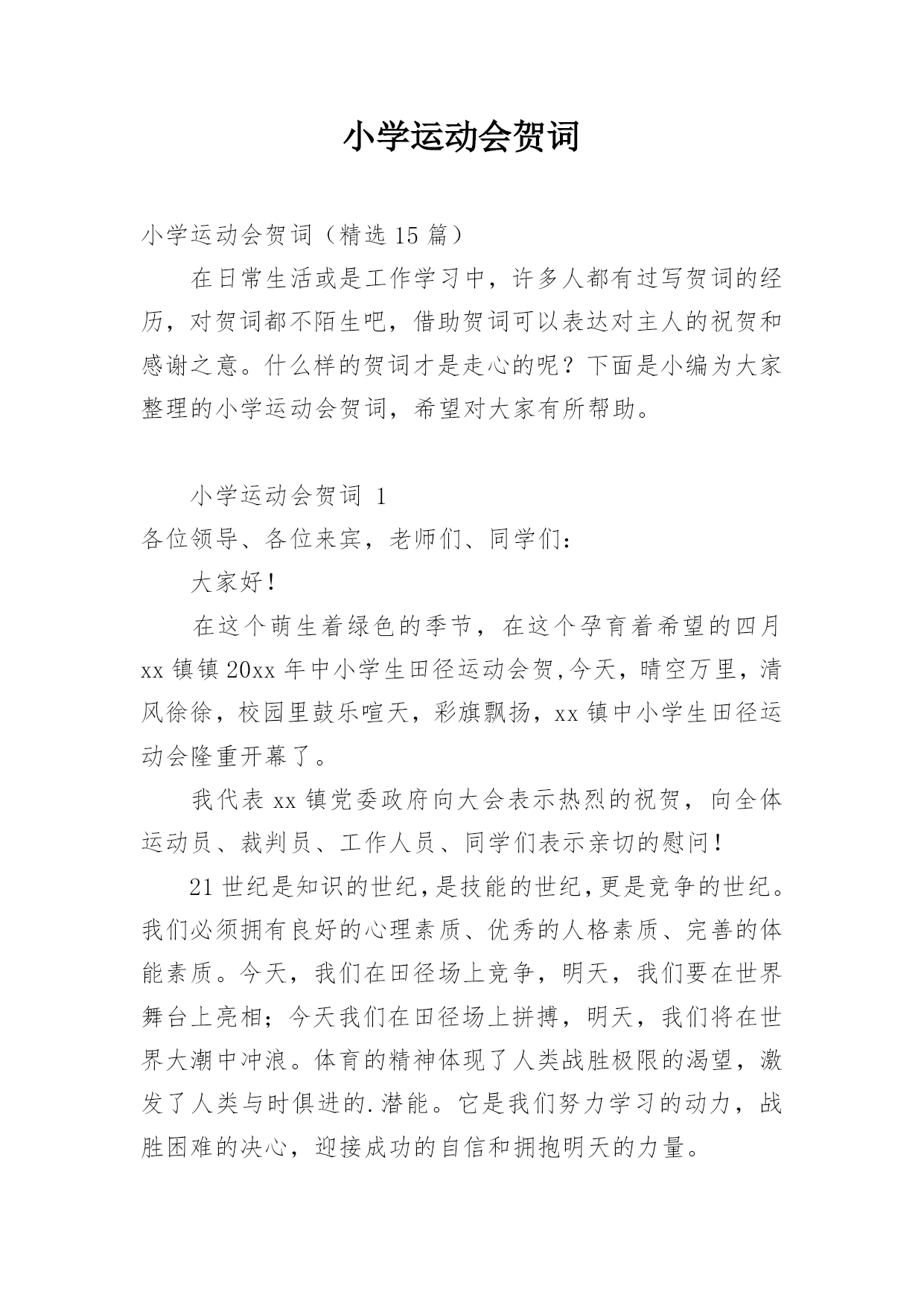 小学运动会贺词小学运动会贺词(精选15篇)在日常生活或是工作学习中,许多人都有过写贺词的经历,对贺词都不陌生吧,借助贺词可以表达对主人的祝贺和感谢之意。什么样的贺词才是走心的呢?下面是小编为大家整理的小学运动会贺词,希望对大家有所帮助。小学运动会贺词1各位领导、各位来宾,老师们、同学们:大家好!在这个萌生着绿色的季节,在这个孕育着希望的四月xx镇镇20xx年中小学生田径运动会贺,今天,晴空万里,清风徐徐,校园里鼓乐喧天,彩旗飘扬,xx镇中小学生田径运动会隆重开幕了。我代表xx镇党委政府向大会表示热烈的祝贺
