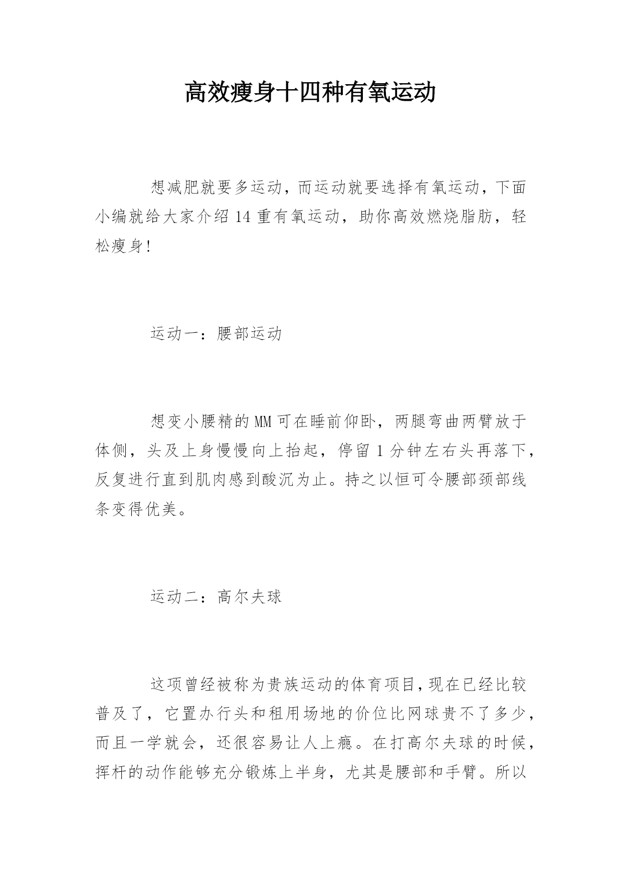 高效瘦身十四种有氧运动想减肥就要多运动,而运动就要选择有氧运动,下面小编就给大家介绍14重有氧运动,助你高效燃烧脂肪,轻松瘦身!运动一:腰部运动想变小腰精的MM可在睡前仰卧,两腿弯曲两臂放于体侧,头及上身慢慢向上抬起,停留1分钟左右头再落下,反复进行直到肌肉感到酸沉为止。持之以恒可令腰部颈部线条变得优美。运动二:高尔夫球这项曾经被称为贵族运动的体育项目,现在已经比较普及了,它置办行头和租用场地的价位比网球贵不了多少,而且一学就会,还很容易让人上瘾。在打高尔夫球的时候,挥杆的动作能够充分锻炼上半身,尤其是腰