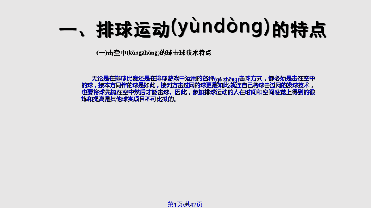 一、排球运动(yùndòng)的特点一、排球运动(yùndòng)的特点一、排球运动(yùndòng)的特点一、排球(páiqiú)运动的特点一、排球运动(yùndòng)的特点二、排球(páiqiú)运动的功能二、排球运动(yùndòng)的功能二、排球(páiqiú)运动的功能二、排球(páiqiú)运动的功能三、排球(páiqiú)运动的比赛方法第二节排球(páiqiú)运动的起源与传播第二节排球运动的起源(qǐyuán)与传播排球运动在亚洲发展过程中先后经历(jīnglì)了16人制、12人制、9