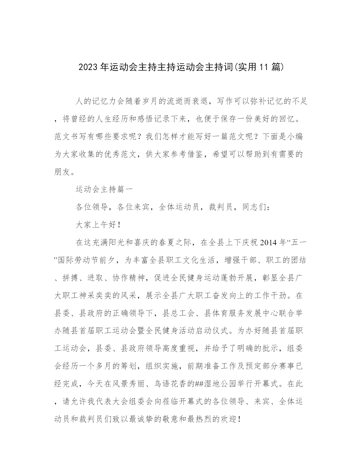2023年运动会主持主持运动会主持词(实用11篇).docx