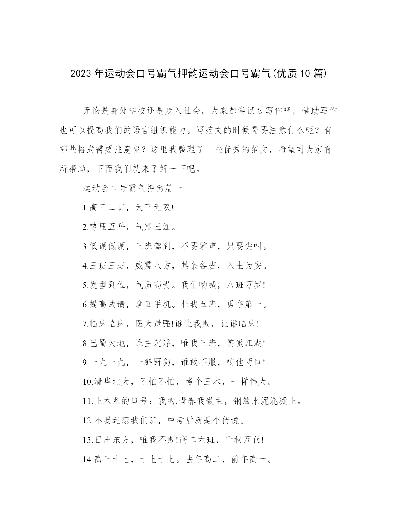 2023年运动会口号霸气押韵运动会口号霸气(优质10篇).docx