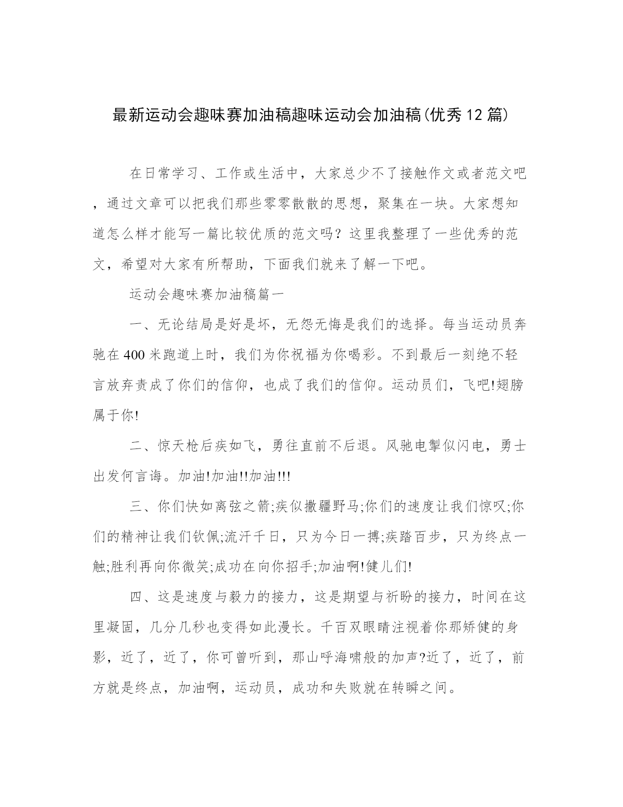 最新运动会趣味赛加油稿趣味运动会加油稿(优秀12篇).docx