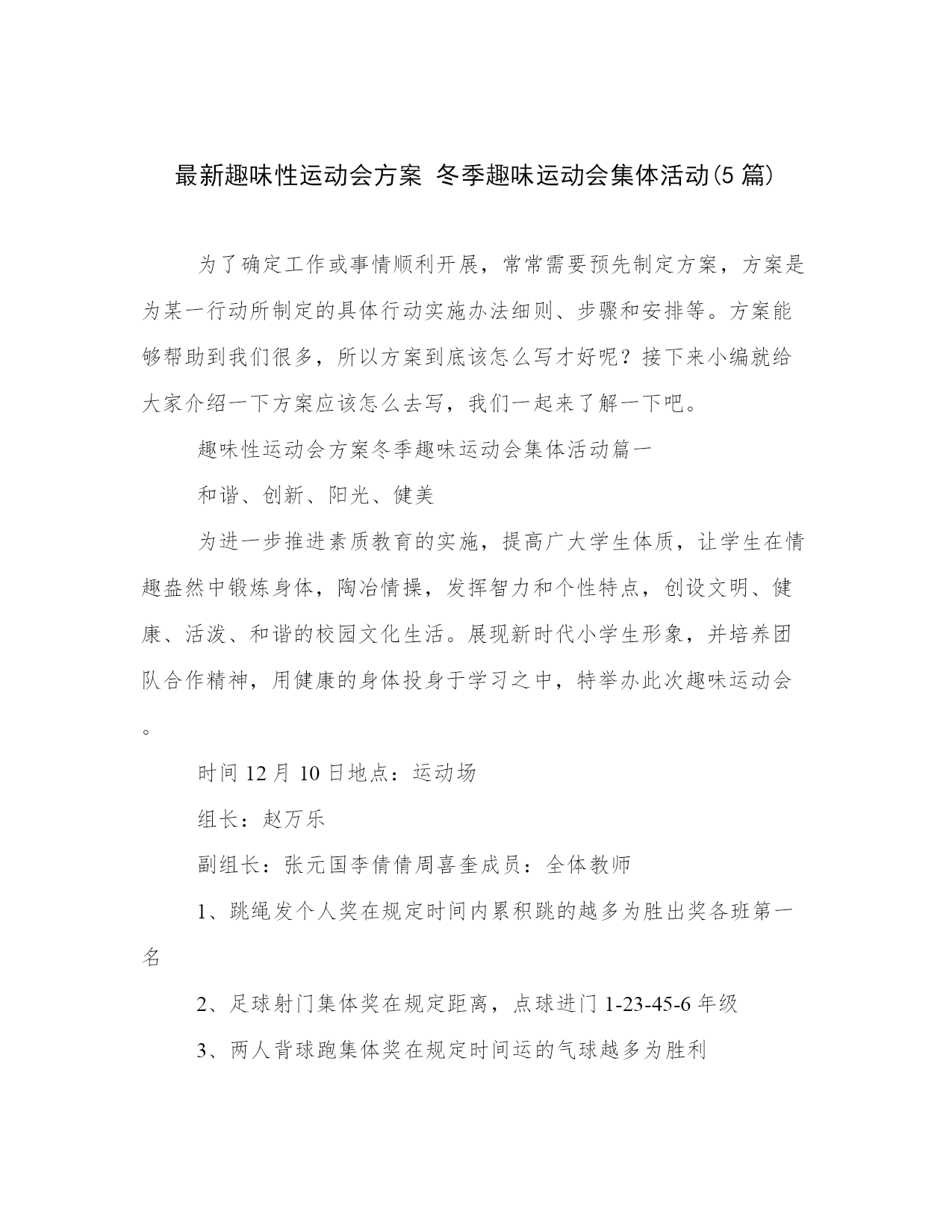 最新趣味性运动会方案 冬季趣味运动会集体活动(5篇).docx