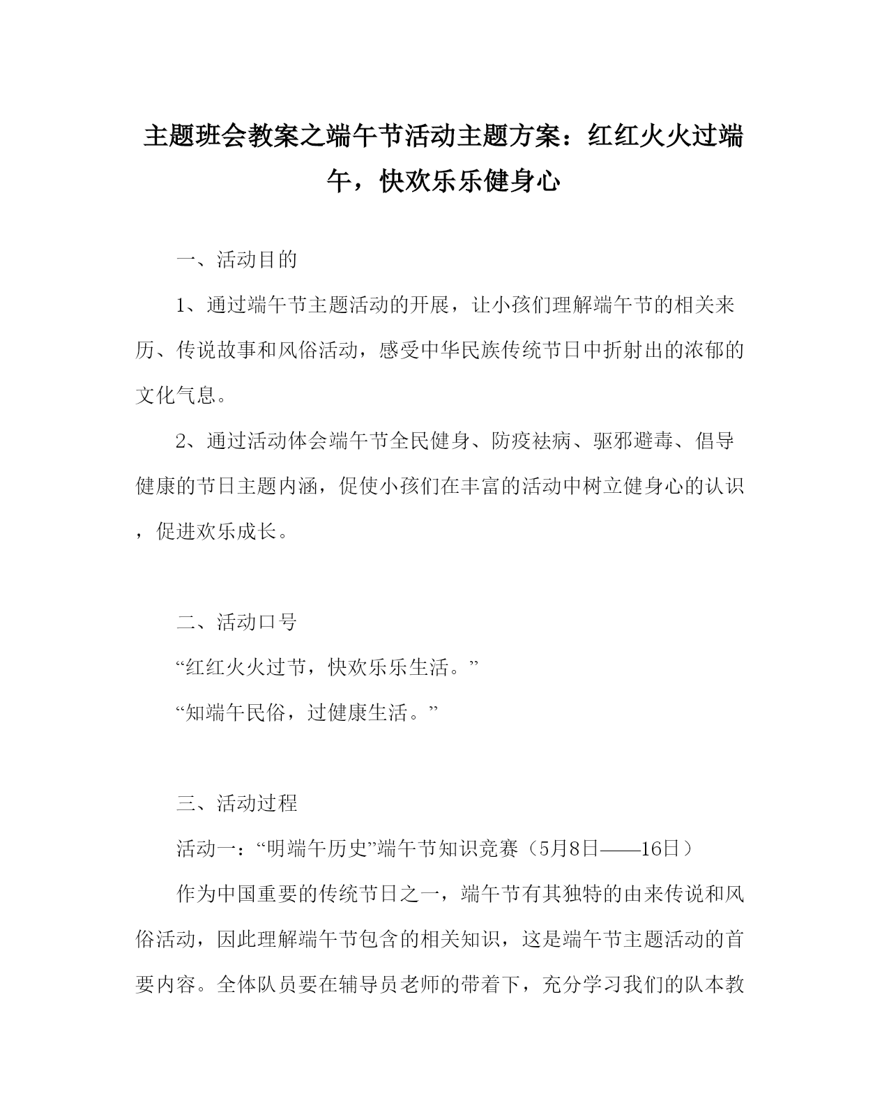 2022主题班会教案端午节活动主题方案红红火火过端午,快快乐乐健身心.docx