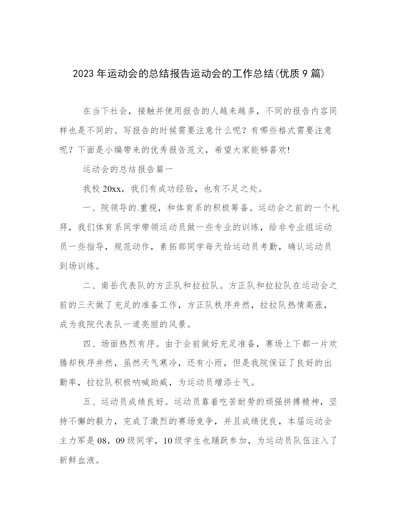 2023年运动会的总结报告运动会的工作总结(优质9篇).docx