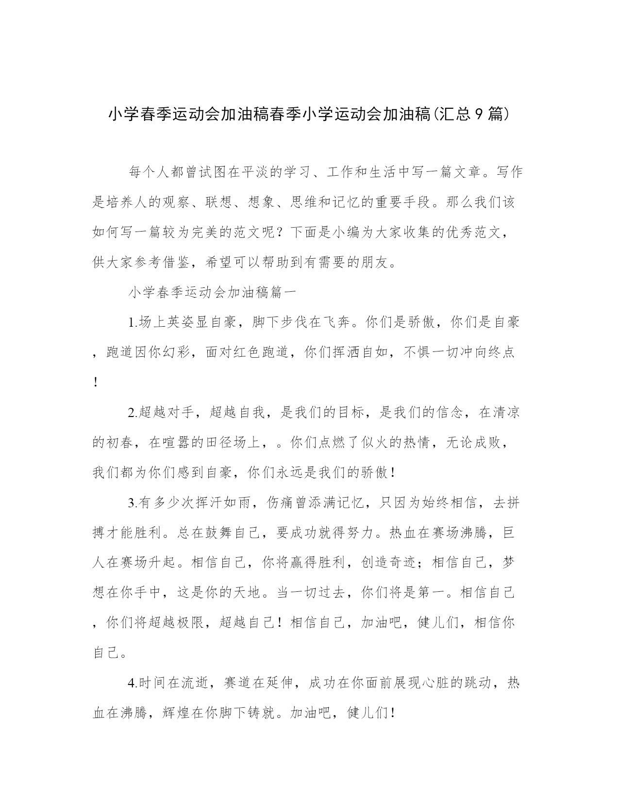 小学春季运动会加油稿春季小学运动会加油稿(汇总9篇).docx