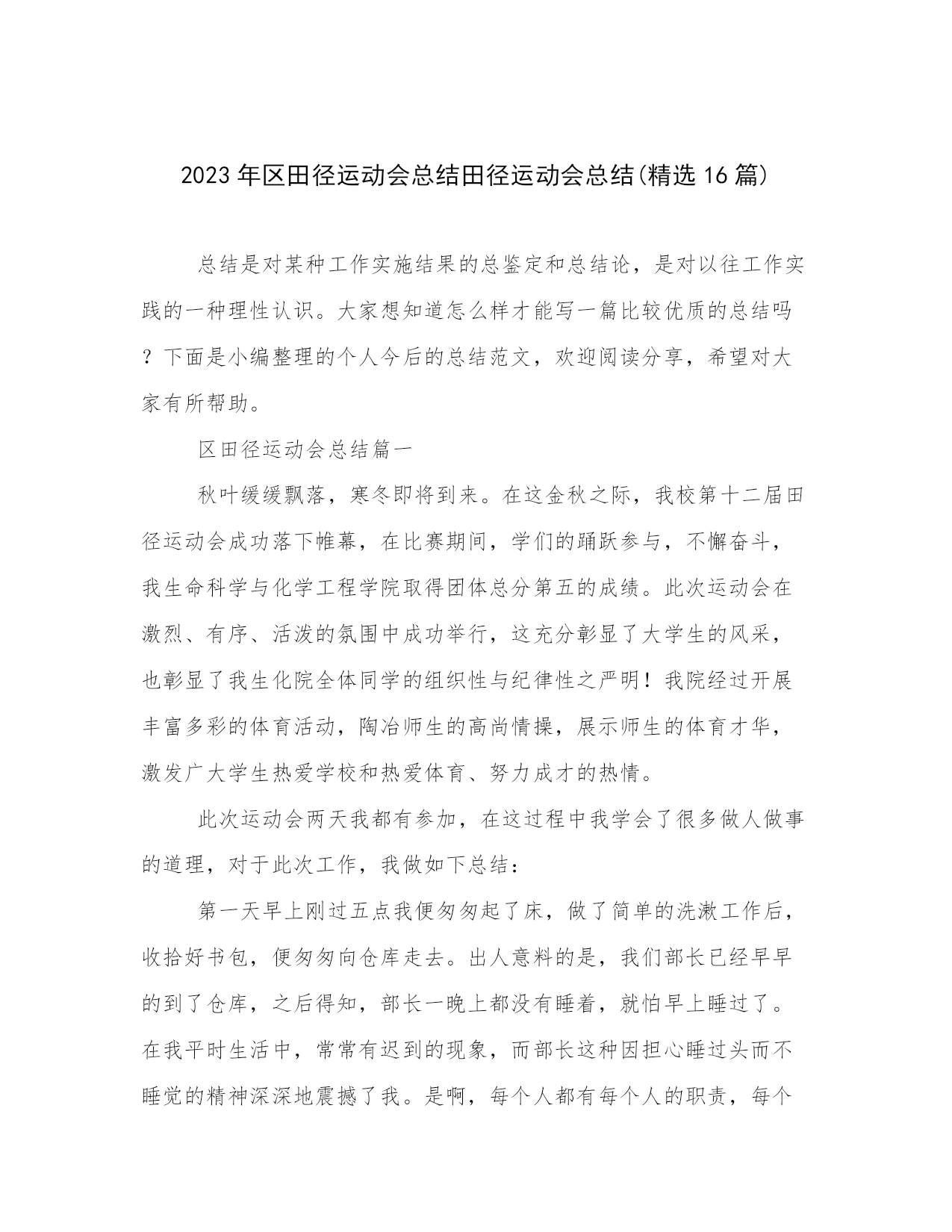 2023年区田径运动会总结田径运动会总结(精选16篇).docx