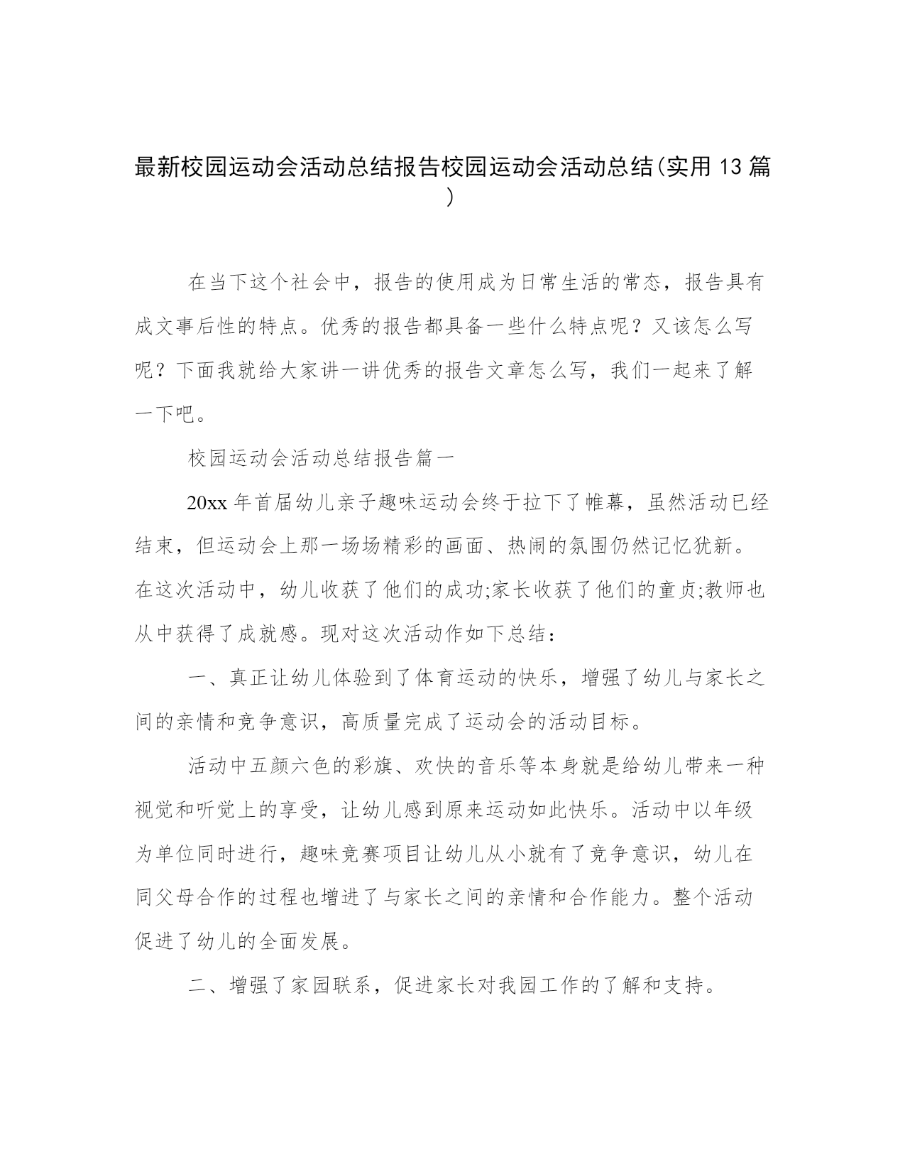 最新校园运动会活动总结报告校园运动会活动总结(实用13篇).docx