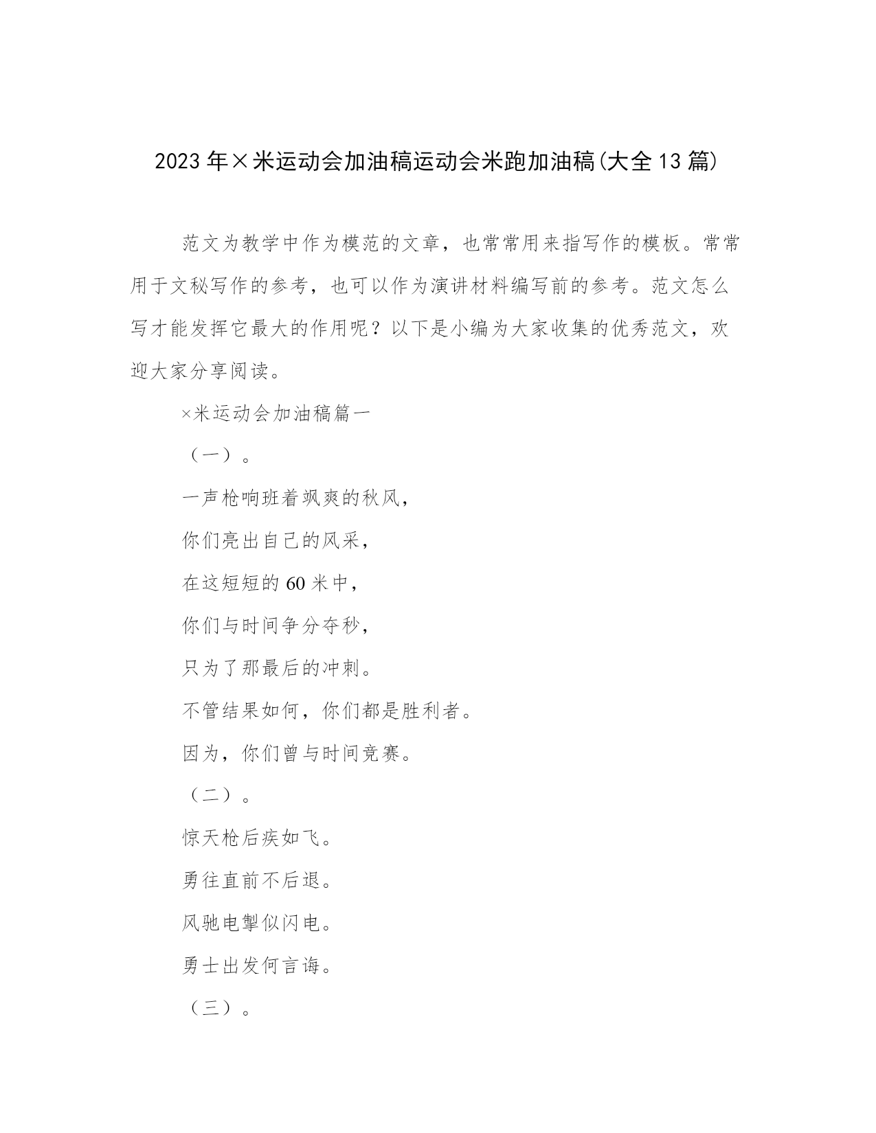 2023年×米运动会加油稿运动会米跑加油稿(大全13篇).docx