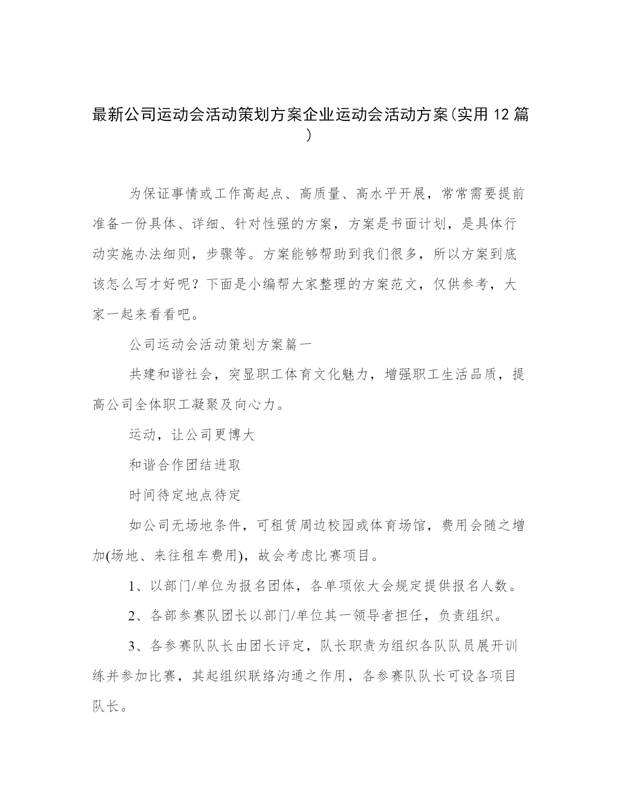 最新公司运动会活动策划方案企业运动会活动方案(实用12篇).docx