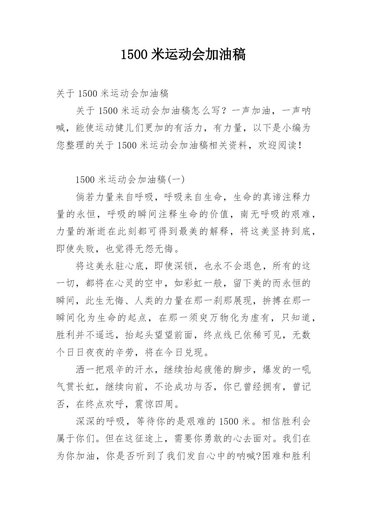 1500米运动会加油稿关于1500米运动会加油稿关于1500米运动会加油稿怎么写?一声加油,一声呐喊,能使运动健儿们更加的有活力,有力量,以下是小编为您整理的关于1500米运动会加油稿相关资料,欢迎阅读!1500米运动会加油稿(一)倘若力量来自呼吸,呼吸来自生命,生命的真谛注释力量的永恒,呼吸的瞬间注释生命的价值,南无呼吸的艰难,力量的渐逝在此刻都可得到最美的解释,将这美坚持到底,即使失败,也觉得无怨无悔。将这美永驻心底,即使深锁,也永不会退色,所有的这一切,都将在心灵的空中,如彩虹一般,留下美的而永恒的