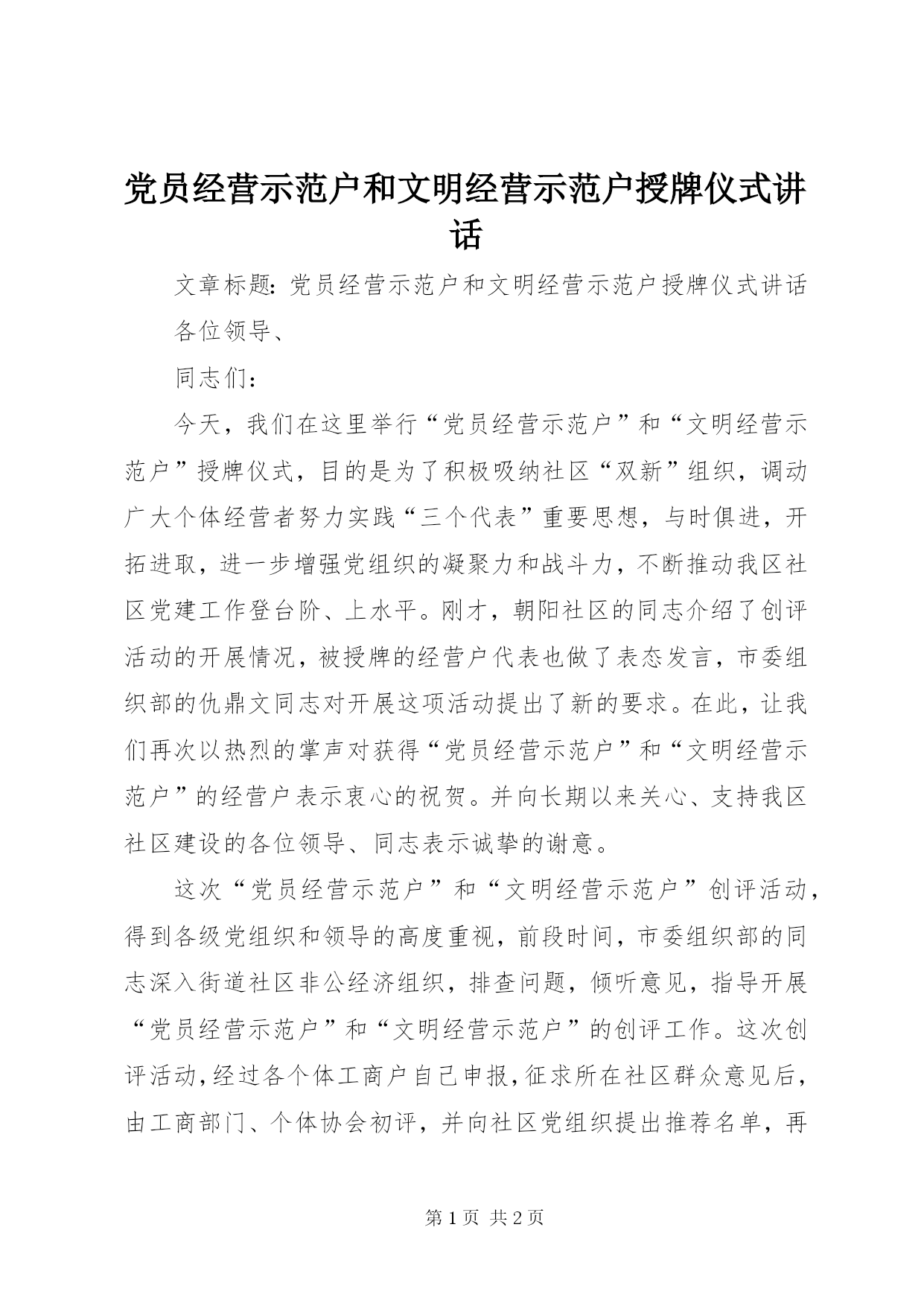 党员经营示范户和文明经营示范户授牌仪式讲话 (2).docx