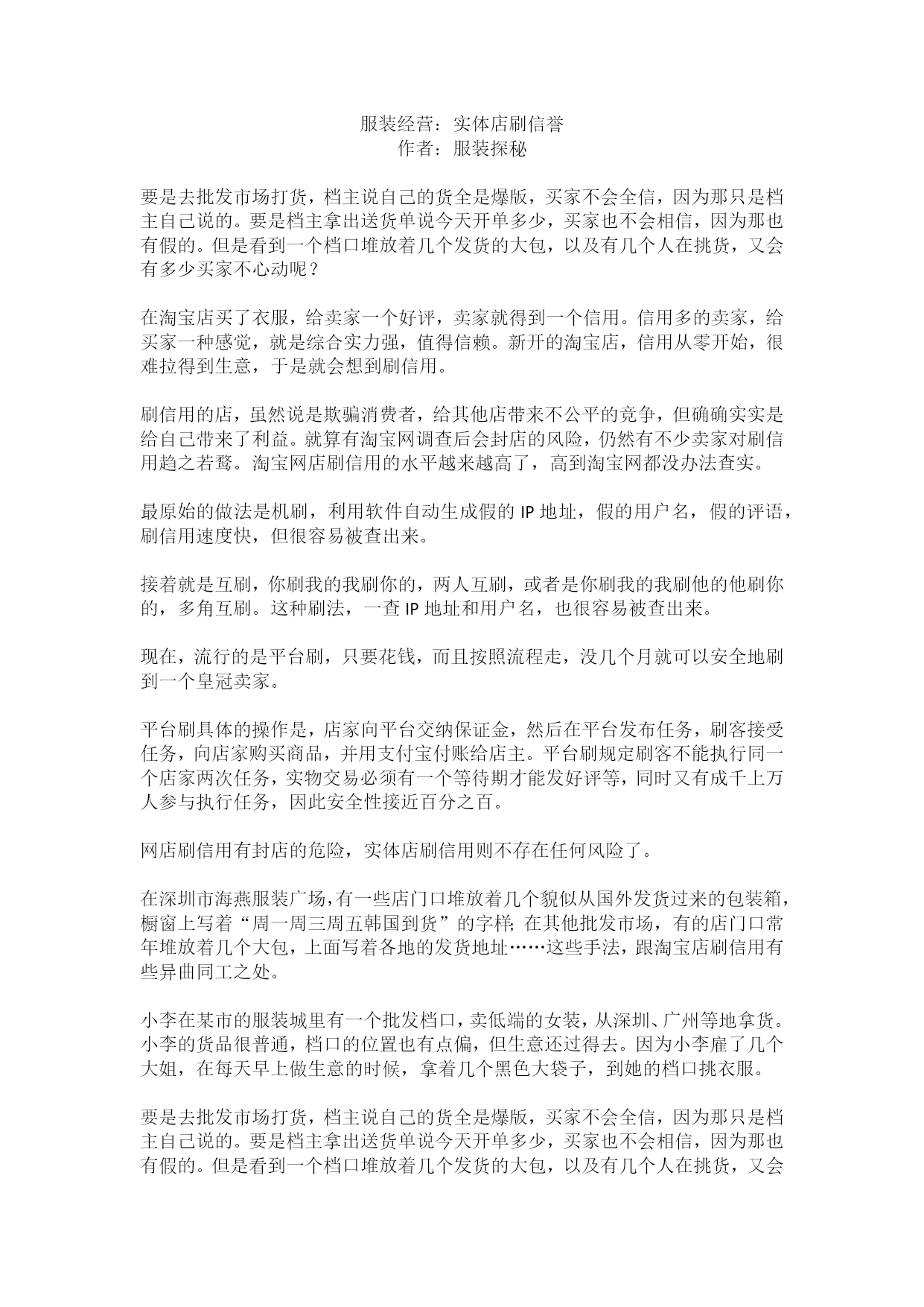 服装经营:实体店刷信誉.doc