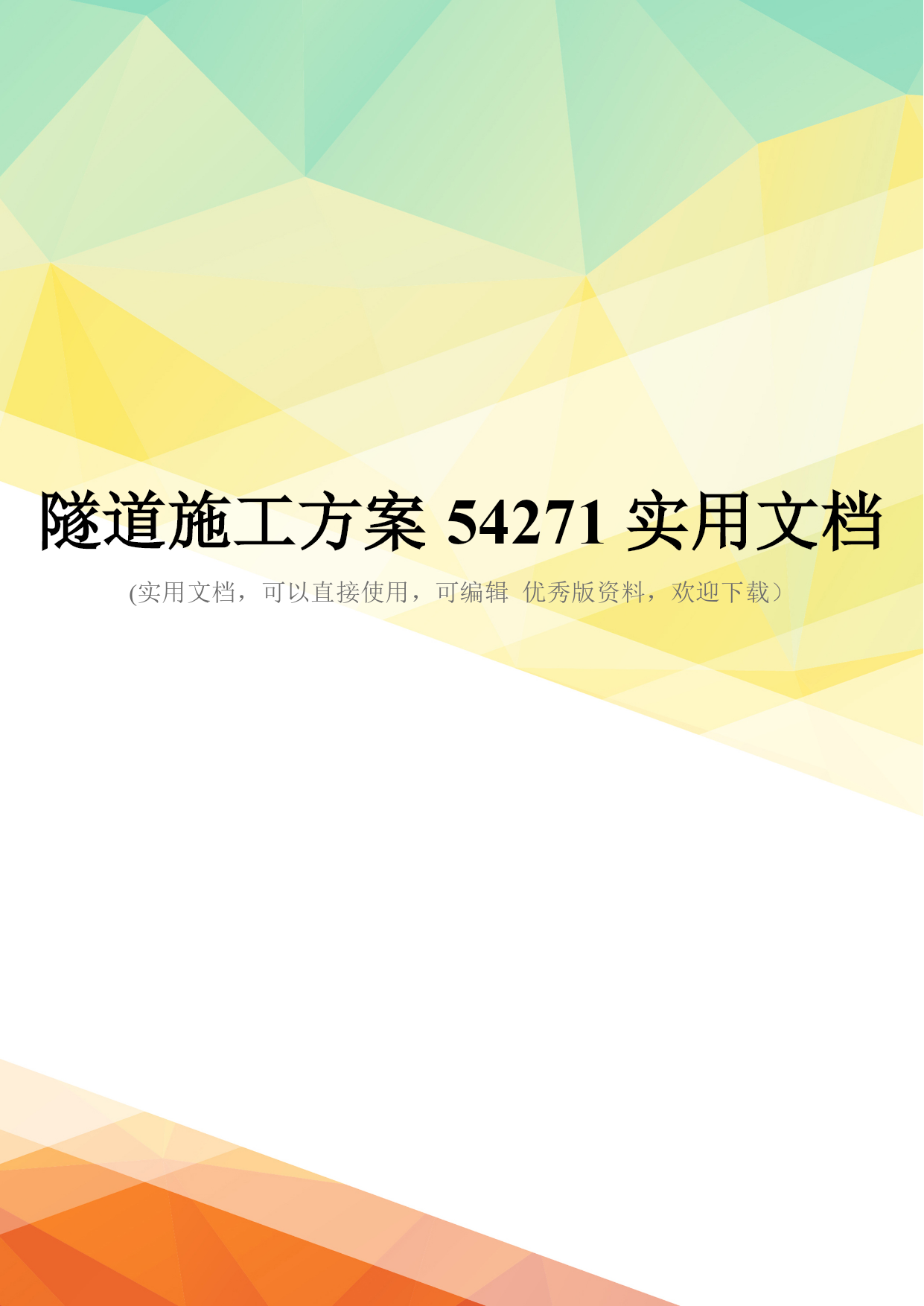 隧道施工方案54271实用文档(实用文档,可以直接使用,可编辑优秀版资料,欢迎下载)姬家湾隧道施工方案一、编制说明(一)编制依据1.洛阳至栾川高速公路嵩县至栾川段业主招标文件和施工设计图.2.根据我公司《施工技术管理细则》中关于编制实施性施工组织设计的有关要求.3.参与施工人员的技术状况、机构组成、机械设备、检测装置等安排.4.根据现场调查的有关资料(当地水文、气象、民俗、交通、材料供应、水源、场地情况).5.建设单位提供的招标图纸以及招标期间招标单位与投标单位所有来往的函件及补遗资料;我单位积累的成熟技
