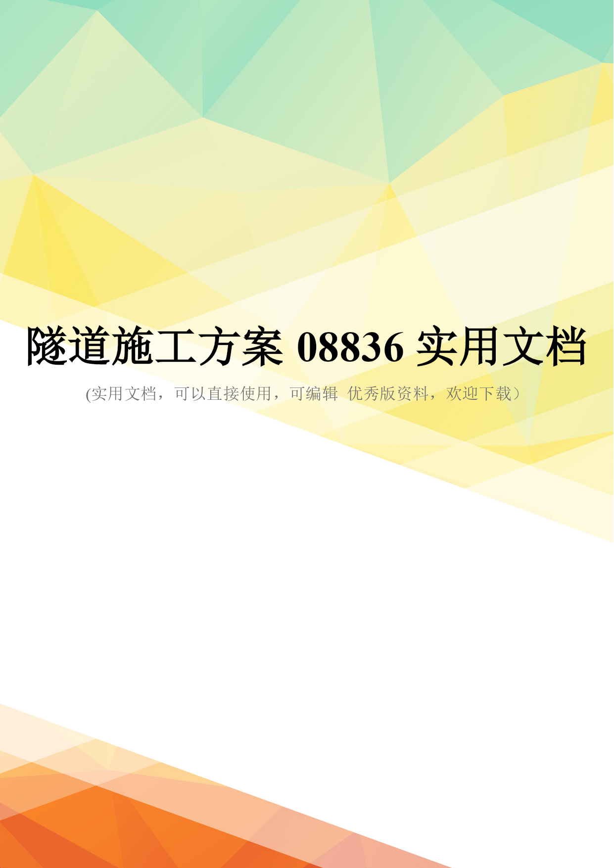 隧道施工方案08836实用文档(实用文档,可以直接使用,可编辑优秀版资料,欢迎下载)姬家湾隧道施工方案一、编制说明(一)编制依据1.洛阳至栾川高速公路嵩县至栾川段业主招标文件和施工设计图.2.根据我公司《施工技术管理细则》中关于编制实施性施工组织设计的有关要求。3.参与施工人员的技术状况、机构组成、机械设备、检测装置等安排。4.根据现场调查的有关资料(当地水文、气象、民俗、交通、材料供应、水源、场地情况).5.建设单位提供的招标图纸以及招标期间招标单位与投标单位所有来往的函件及补遗资料;我单位积累的成熟技