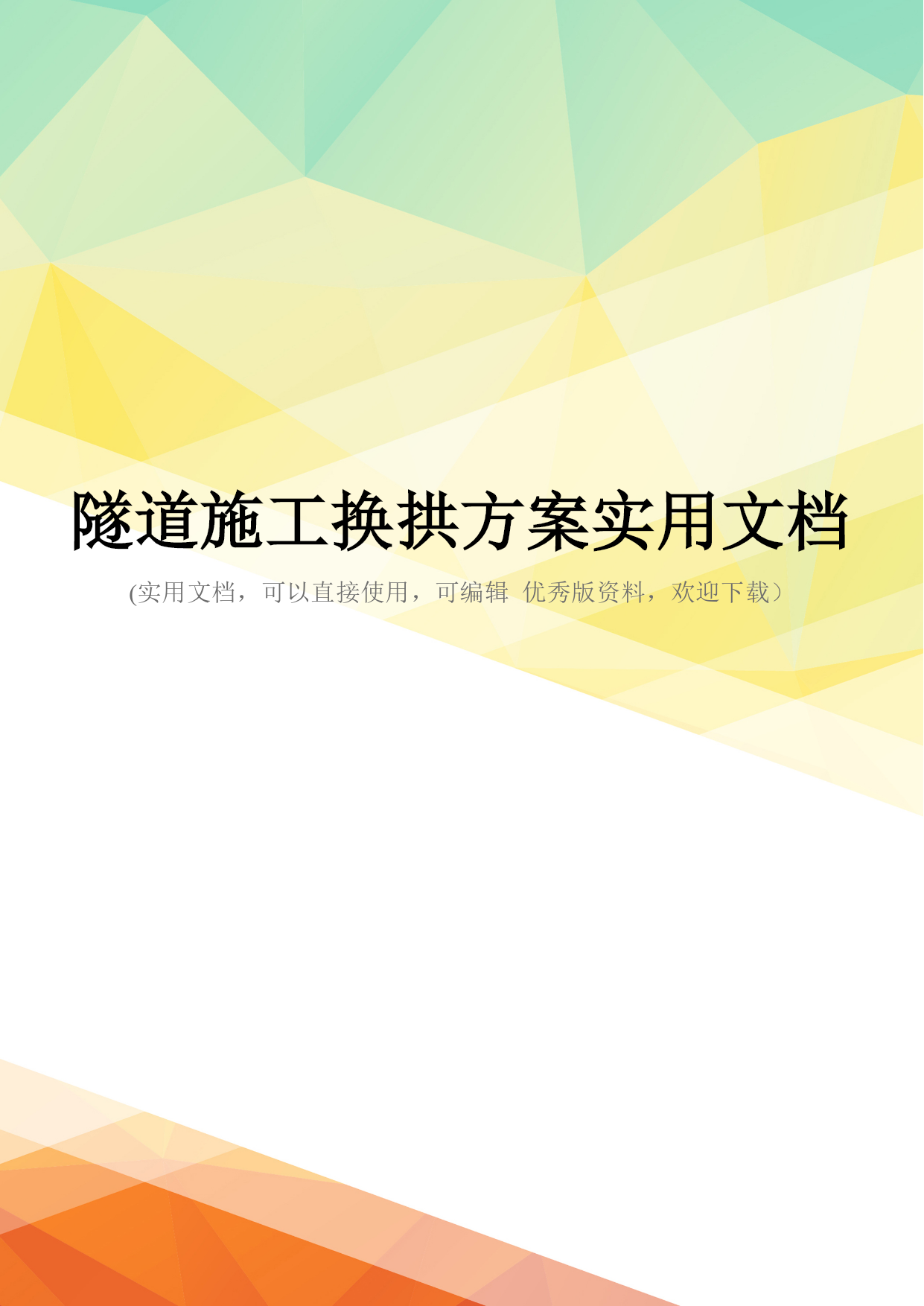 隧道施工换拱方案实用文档(实用文档,可以直接使用,可编辑优秀版资料,欢迎下载)表A。0.1换拱方案报审表工程项目名称:施工合同段:致(项目监理机构):我单位根据施工合同的有关规定已编制完成工程的换拱施工(方案),并经我单位技术负责人审查批准,请予以审查。附:换拱施工方案。施工单位(章):项目负责人:日期:年月日专业监理工程师意见:专业监理工程师:日期:年月日项目监理机构意见:项目监理机构(章):总监理工程师:日期:年月日建设单位意见:建设单位(章):负责人:日期:年月日换拱施工方案一、工程概况二、现场工程