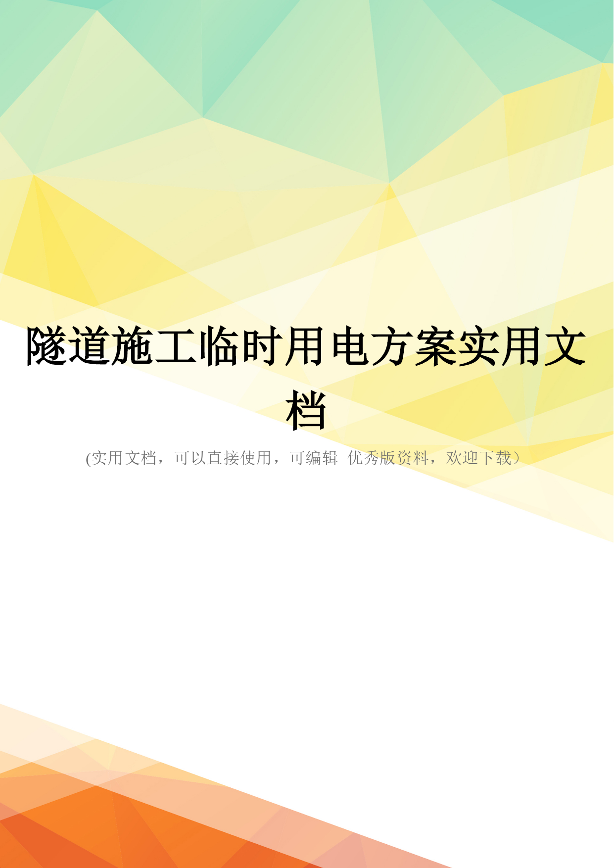 隧道施工临时用电方案实用文档(实用文档,可以直接使用,可编辑优秀版资料,欢迎下载)新建乐清湾港区铁路支线工程SG02标(DK2+505~DK11+040)隧道施工临时用电方案中铁大桥局集团浙江乐清湾铁路SG02标项目经理部二〇一六年三月新建乐清湾港区铁路支线工程SG02标(DK2+505~DK11+040)隧道施工临时用电方案编制:复核:中铁大桥局集团浙江乐清湾铁路SG02标项目经理部二〇一六年三月目录TOC\o"1-3"\h\z\uHYPERLINK\l"_Toc427247514"一、编制依据
