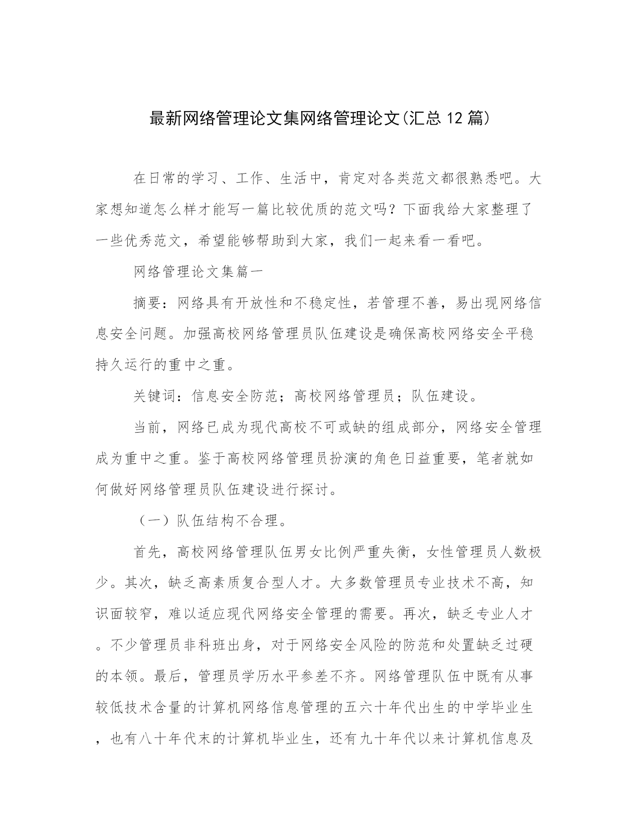 最新网络管理论文集网络管理论文(汇总12篇).docx