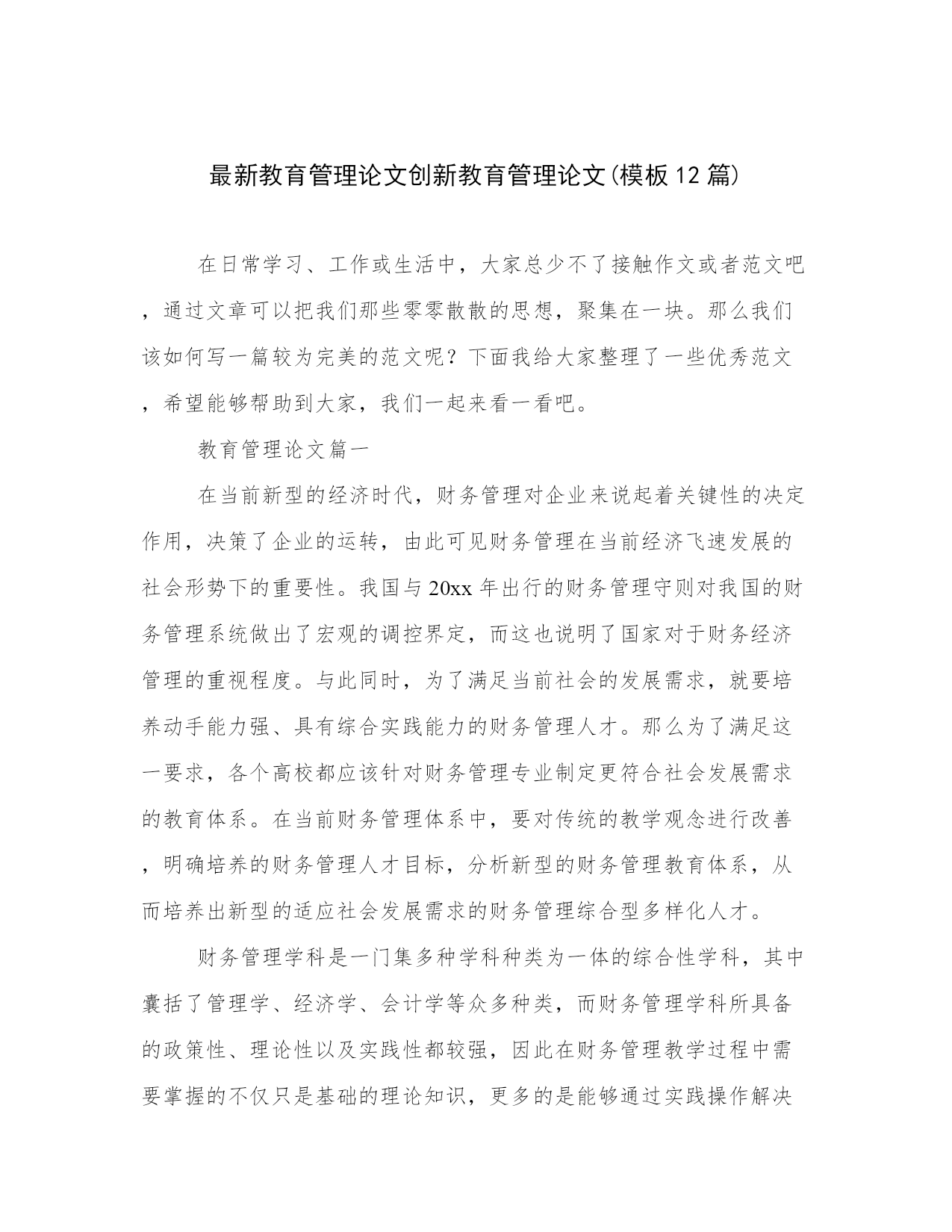 最新教育管理论文创新教育管理论文(模板12篇).docx