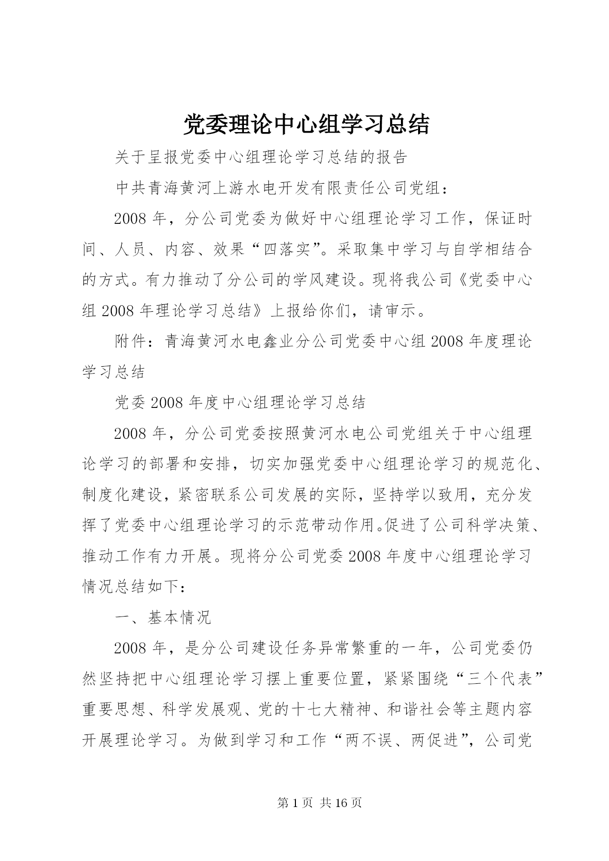 第PAGE\*Arabic\*MERGEFORMAT16页共NUMPAGES\*MERGEFORMAT16页党委理论中心组学习总结关于呈报党委中心组理论学习总结的报告中共青海黄河上游水电开发有限责任公司党组:2008年,分公司党委为做好中心组理论学习工作,保证时间、人员、内容、效果“四落实”。采取集中学习与自学相结合的方式。有力推动了分公司的学风建设。现将我公司《党委中心组2008年理论学习总结》上报给你们,请审示。附件:青海黄河水电鑫业分公司党委中心组2008年度理论学习总结党委2008年度
