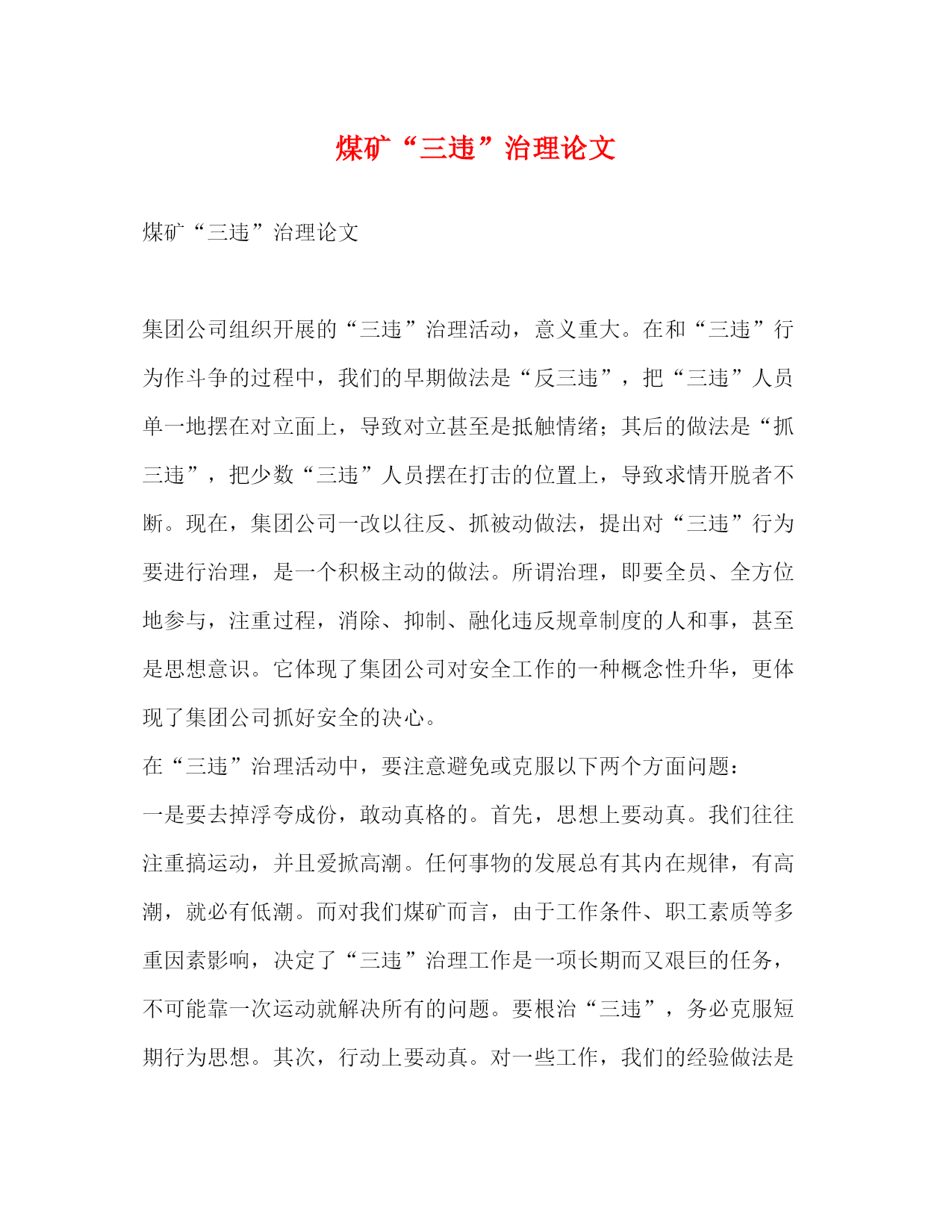 PAGE此资料由网络收集而来,如有侵权请告知上传者立即删除。资料共分享,我们负责传递知识。煤矿“三违”治理论文煤矿“三违”治理论文集团公司组织开展的“三违”治理活动,意义重大。在和“三违”行为作斗争的过程中,我们的早期做法是“反三违”,把“三违”人员单一地摆在对立面上,导致对立甚至是抵触情绪;其后的做法是“抓三违”,把少数“三违”人员摆在打击的位置上,导致求情开脱者不断。现在,集团公司一改以往反、抓被动做法,提出对“三违”行为要进行治理,是一个积极主动的做法。所谓治理,即要全员、全方位地参与,注重过