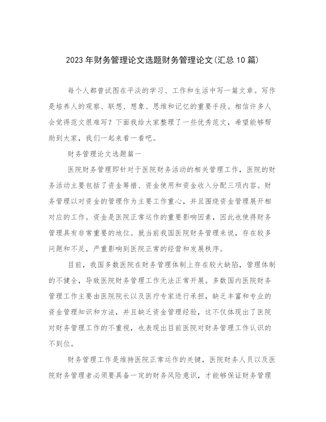 2023年财务管理论文选题财务管理论文(汇总10篇).docx