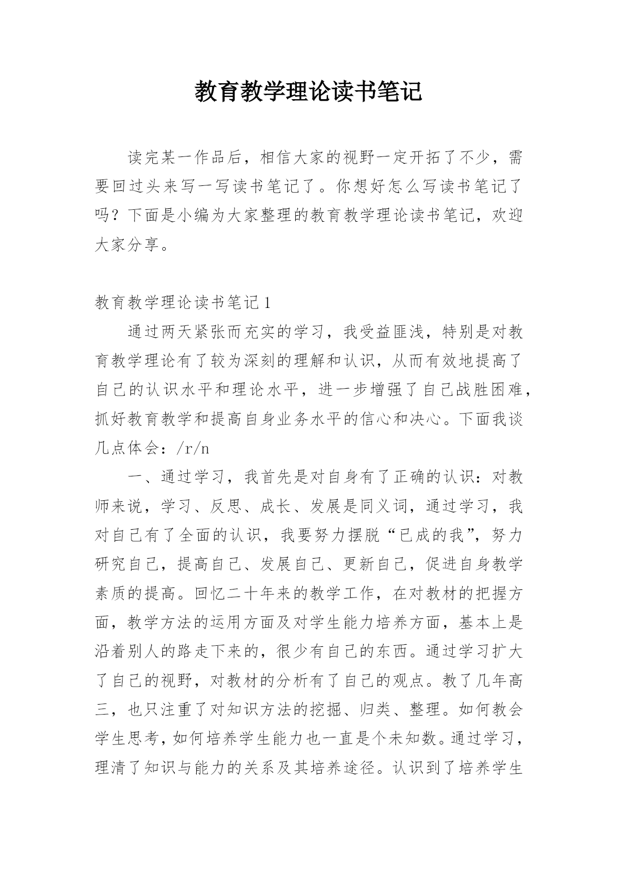 教育教学理论读书笔记读完某一作品后,相信大家的视野一定开拓了不少,需要回过头来写一写读书笔记了。你想好怎么写读书笔记了吗?下面是小编为大家整理的教育教学理论读书笔记,欢迎大家分享。教育教学理论读书笔记1通过两天紧张而充实的学习,我受益匪浅,特别是对教育教学理论有了较为深刻的理解和认识,从而有效地提高了自己的认识水平和理论水平,进一步增强了自己战胜困难,抓好教育教学和提高自身业务水平的信心和决心。下面我谈几点体会:/r/n一、通过学习,我首先是对自身有了正确的认识:对教师来说,学习、反思、成长、发展是同义词