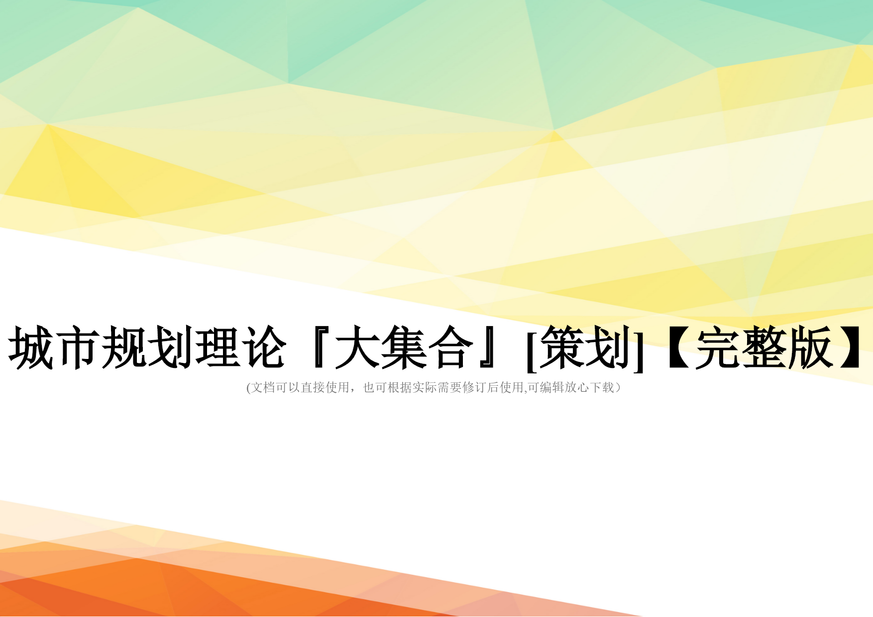 城市规划理论『大集合』[策划]【完整版】(文档可以直接使用,也可根据实际需要修订后使用,可编辑放心下载)城市规划理论『大集合』本文出自:HYPERLINK"://cityup.org/bbs/"都市世界网作者:keynes点击率:487邻里单位C·A·佩里于1939年提出的邻里单位理论,其目的是要在汽车交通开始兴旺的条件下,创造一个适合于居民生活的、舒适平安的和设施完善的居住社区环境。他认为,邻里单位就是“一个组织家庭生活的社区的方案〞,因此这个方案不仅要包括住房,包括它们的环境,而且还要有相应的公