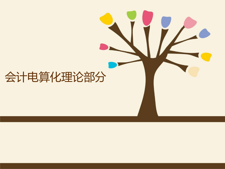 会计电算化理论部分一、会计电算化的概述及基本要求二、帐务系统(总帐系统)三、工资系统四、固定资产系统五、应收应付系统一、会计电算化的概述及基本要求第一节会计法以及其他会计法规(二)会计电算化基本要求序号档案名称保管期限备注一会计凭证类1原始凭证15年2记账凭证15年3汇总凭证15年二会计账簿类4总账15年包括日记总账。5明细账15年6日记账15年现金和银行存款日记账保管25年。7固定资产卡片固定资产报废清理后保管5年。8辅助账簿15年三财务报告类包括各级主管部门汇总财务报告。9月、季度财务报告3年包括文字