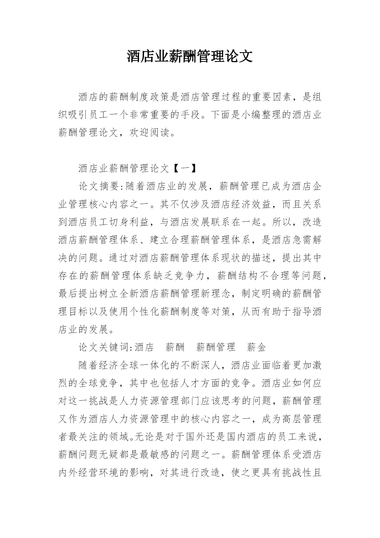 酒店业薪酬管理论文.docx