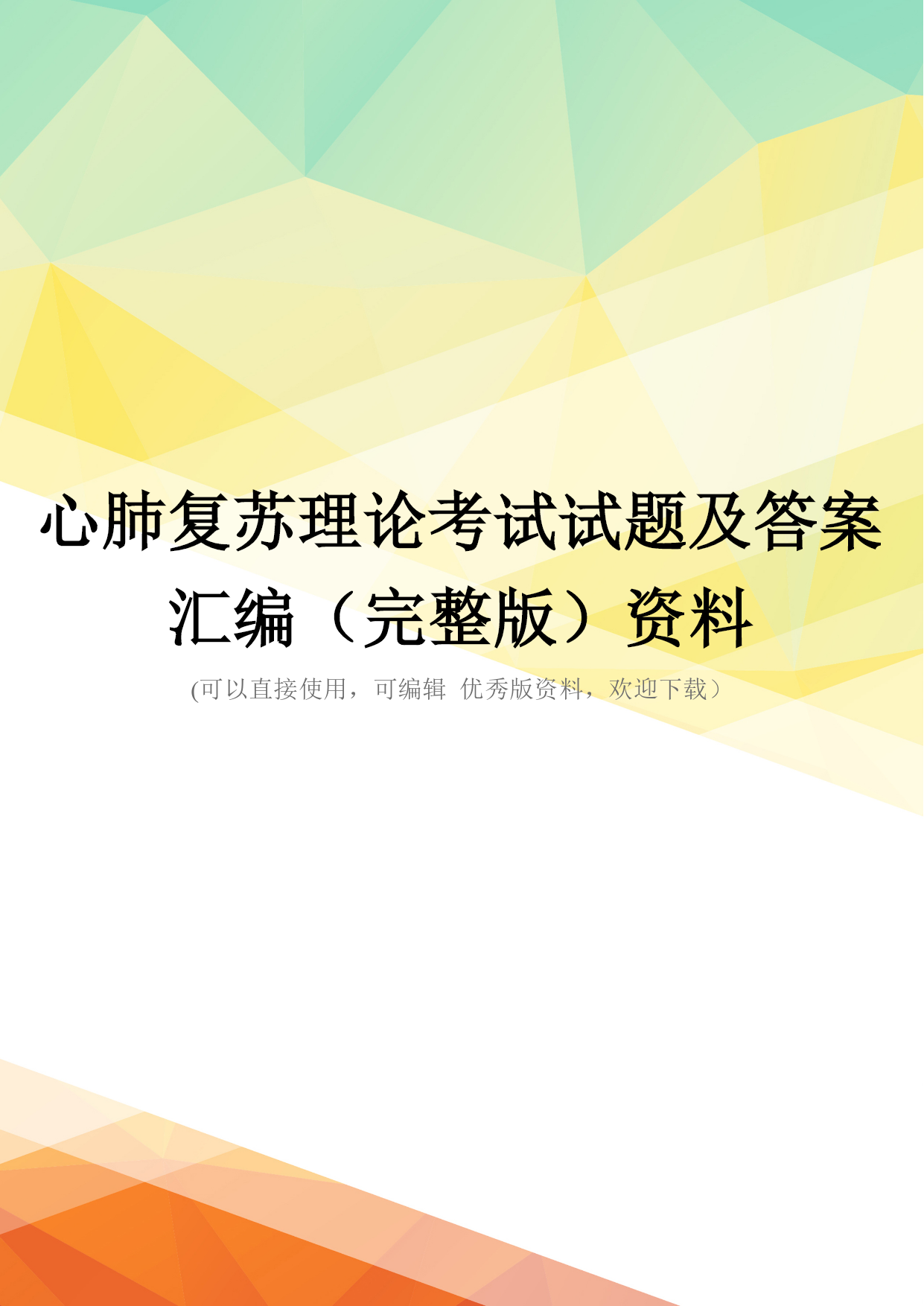 心肺复苏理论考试试题及答案汇编.doc