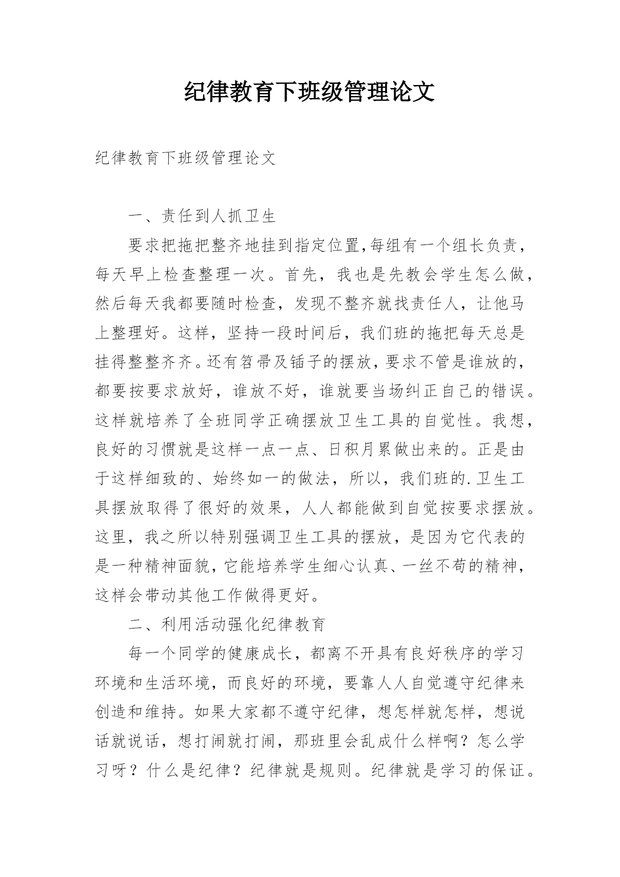 纪律教育下班级管理论文.docx