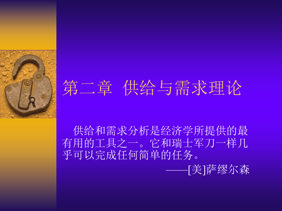 第二章供给与需求理论第一节需求及其决定因素价格与需求量——需求法则注意两概念的区别个人需求与市场需求(P36)第二节供给及其决定因素价格与供给量——供给法则个人供给与市场供给第三节供求均衡与价格决定价格的决定模型均衡的函数计算均衡的变动看不见的手的原理“各个人都不断地努力为他自己所能支配的资本找到最有利的用途。固然,他所考虑的不是社会的利益而是他自身的利益,但他对自身利益的研究自然会或者勿宁说必然会引导他选定最有利于社会的用途。……。确实,他通常不打算促进公共的利益,也不知道他自己是在多达程度促进公共的利