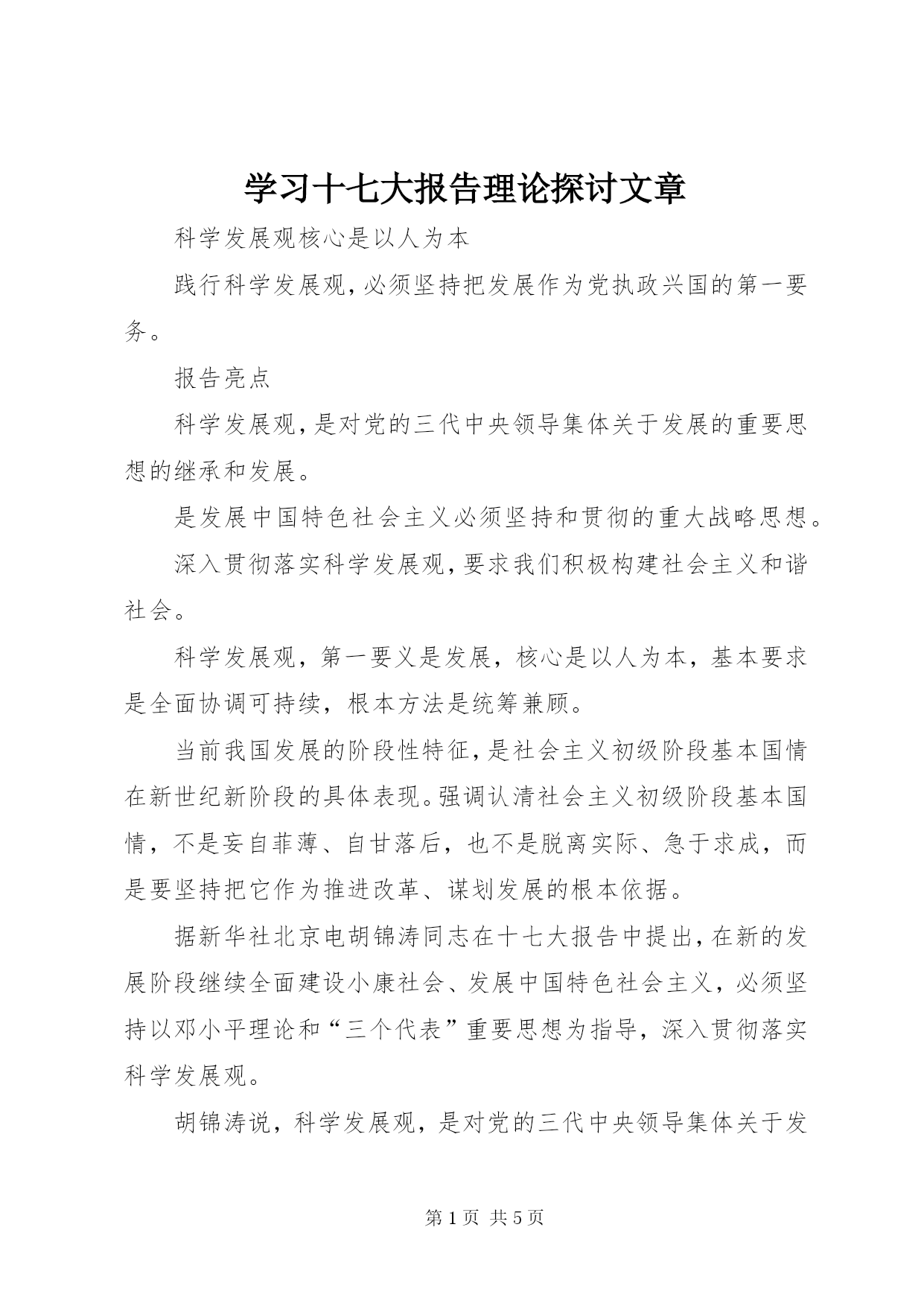 第PAGE\*Arabic\*MERGEFORMAT5页共NUMPAGES\*MERGEFORMAT5页学习十七大报告理论探讨文章科学发展观核心是以人为本践行科学发展观,必须坚持把发展作为党执政兴国的第一要务。报告亮点科学发展观,是对党的三代中央领导集体关于发展的重要思想的继承和发展。是发展中国特色社会主义必须坚持和贯彻的重大战略思想。深入贯彻落实科学发展观,要求我们积极构建社会主义和谐社会。科学发展观,第一要义是发展,核心是以人为本,基本要求是全面协调可持续,根本方法是统筹兼顾。当前我国发展