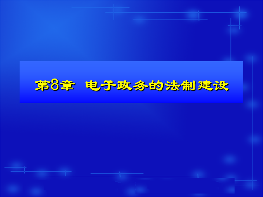 第8章电子政务的法制建设第8章电子政务的法制建设第8章电子政务的法制建设8.1.1互联网所面临的法制困境8.1.2电子政务与法制的关系网络入侵,散布破坏性病毒、逻辑炸弹或者放置后门程序犯罪网络入侵,偷窥、复制、更改或者删除计算机信息犯罪网络诈骗、教唆犯罪网络侮辱、诽谤与恐吓犯罪网络色情传播犯罪电子政务须置于法律法规监督之下信息法律对电子政务的保障作用电子政务的实施有利于法制社会建设美国欧盟日本新加坡1965年美国总统行政办公室发布内部通知保护计算机安全1984年《伪造存取手段以及计算机诈骗与滥用法》《政府