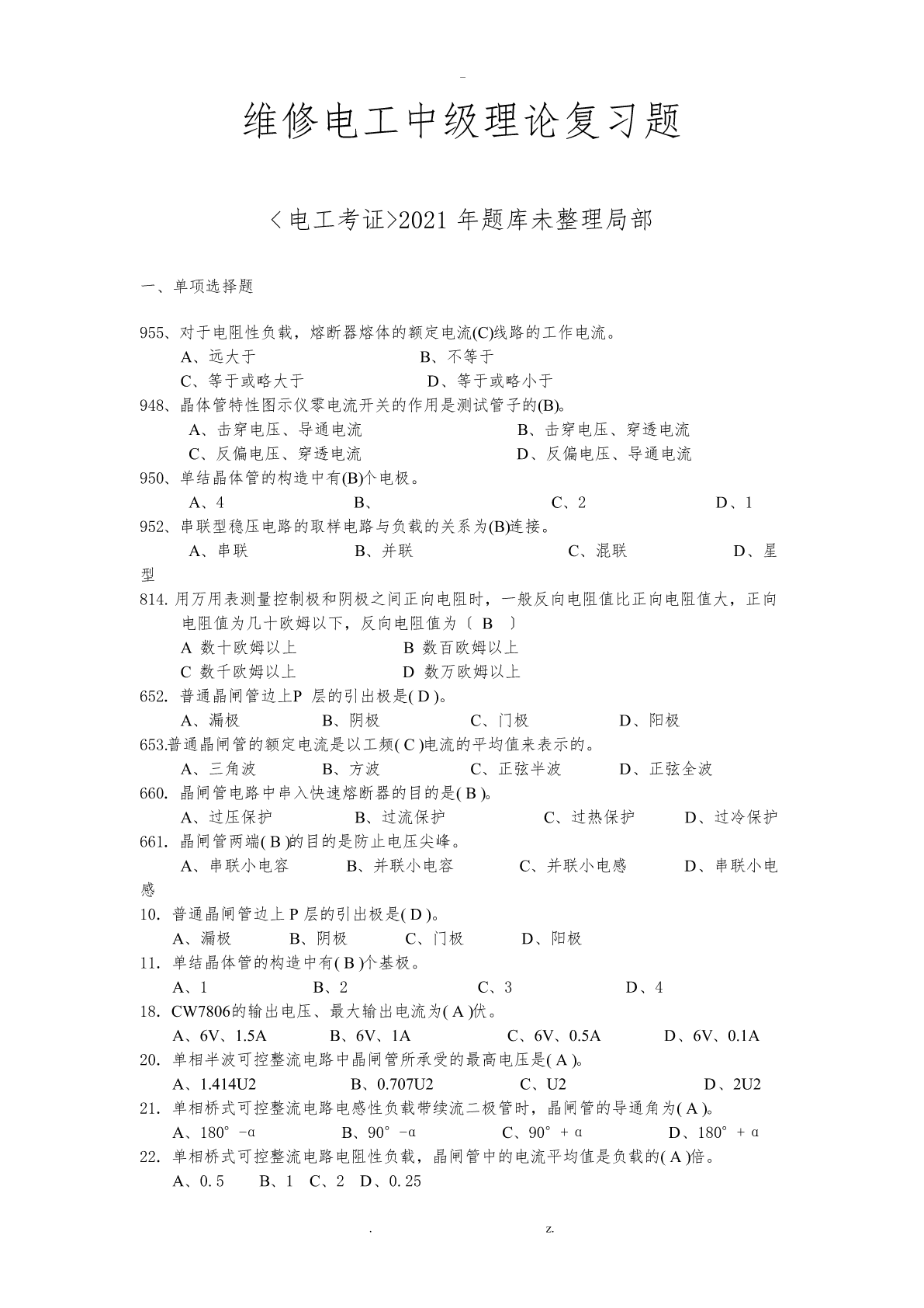 电工考证中级理论未分类题目.pdf
