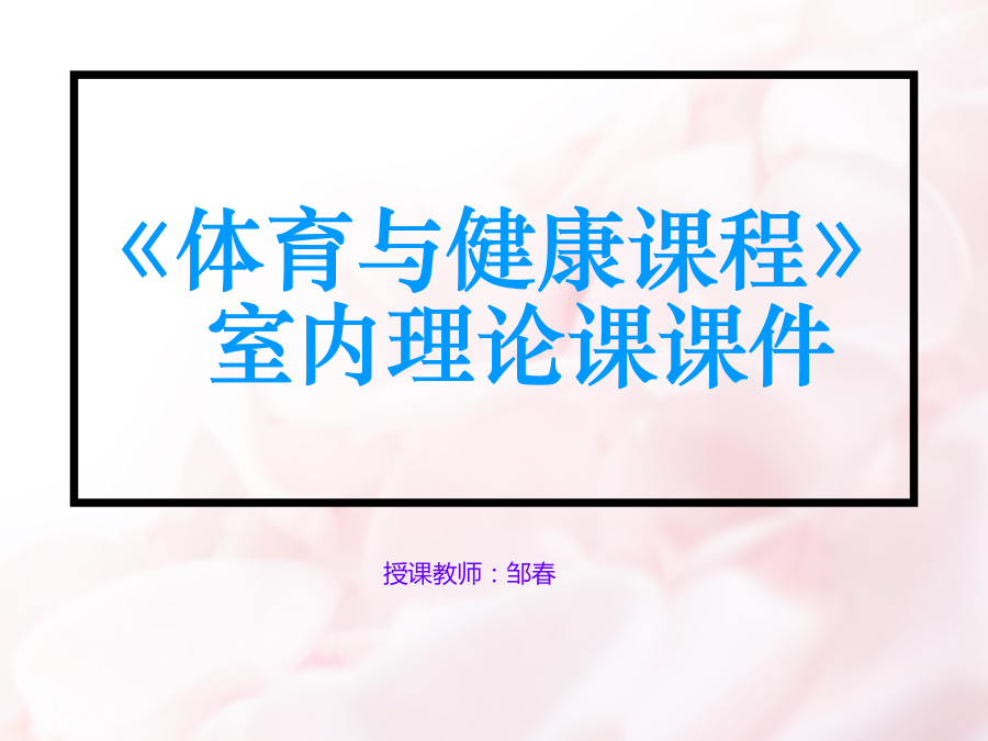 《体育与健康课程》室内理论课课件一、体质与健康(一)体质(二)健康什么是体质?包括哪些范畴?评价一个人的体质水平,应从以下几方面综合起来考虑:理想体质的标志是什么?健康的新概念健康的内涵身体健康:一般是指人体生理的健康。健康的新标准(十大指标)二、自我保健举例:自我保健的概念自我保健的原则和内容怎样提高自我保健能力?自我保健的准则?三、运动中的自我保护按受伤的组织名称分:按损伤后皮肤或粘膜的完整性分:按损伤轻重分类:按损伤病程分:运动中腹痛运动中腹痛运动中腹痛休克遇到出血怎么办?肌肉痉挛?肌肉痉挛时的处理
