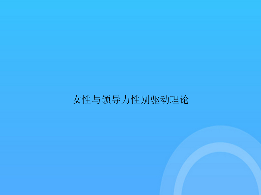 女性与领导力性别驱动理论Contents性别驱动理论的观点调查趋势概述如何让更多女性领导晋升为高层—促进女性领导力发展的模式(二)57%的女性拥有比较高的同性优先权男性和女性是依据性别进行的分类,性别是指一些文化背景下对与性相关的含义和赋值进行的一种分类提供平衡工作/非工作的利益对领导力性别动力理论的评价可同时应对多项任务、情绪化、感性、坚强、富于直觉、对领导力性别动力理论的评价“传递理论”认为原因在于一直没有形成女性做高层的职业传统57%的女性拥有比较高的同性优先权和大多数做性别角色的研究一样,我们采用