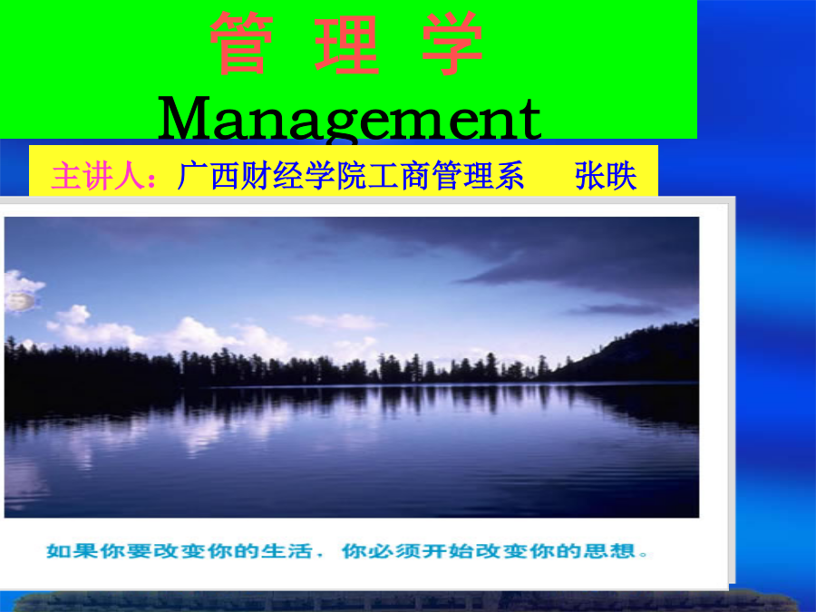 第二讲管理思想和理论管理活动或实践管理学:是研究各种管理活动中共同的、带有规律性的原理和方法的科学。以一般的组织的管理为研究对象,研究包括管理的基本概念、原理、方法、和程序,探索人、财、物、信息、技术、时间等资源的计划和控制问题,组织结构设计问题,对组织中的人(管理客体)的领导与激励问题。一、管理学的研究对象以各种管理工作中普遍适用的原理和方法作为研究对象的二、管理学研究的方法(一)归纳法:由个别到一般(二)演绎法:由一般到个别(三)试验法:人为创造条件,寻找因果关系。管理学的特性1.管理的自然属性指管理