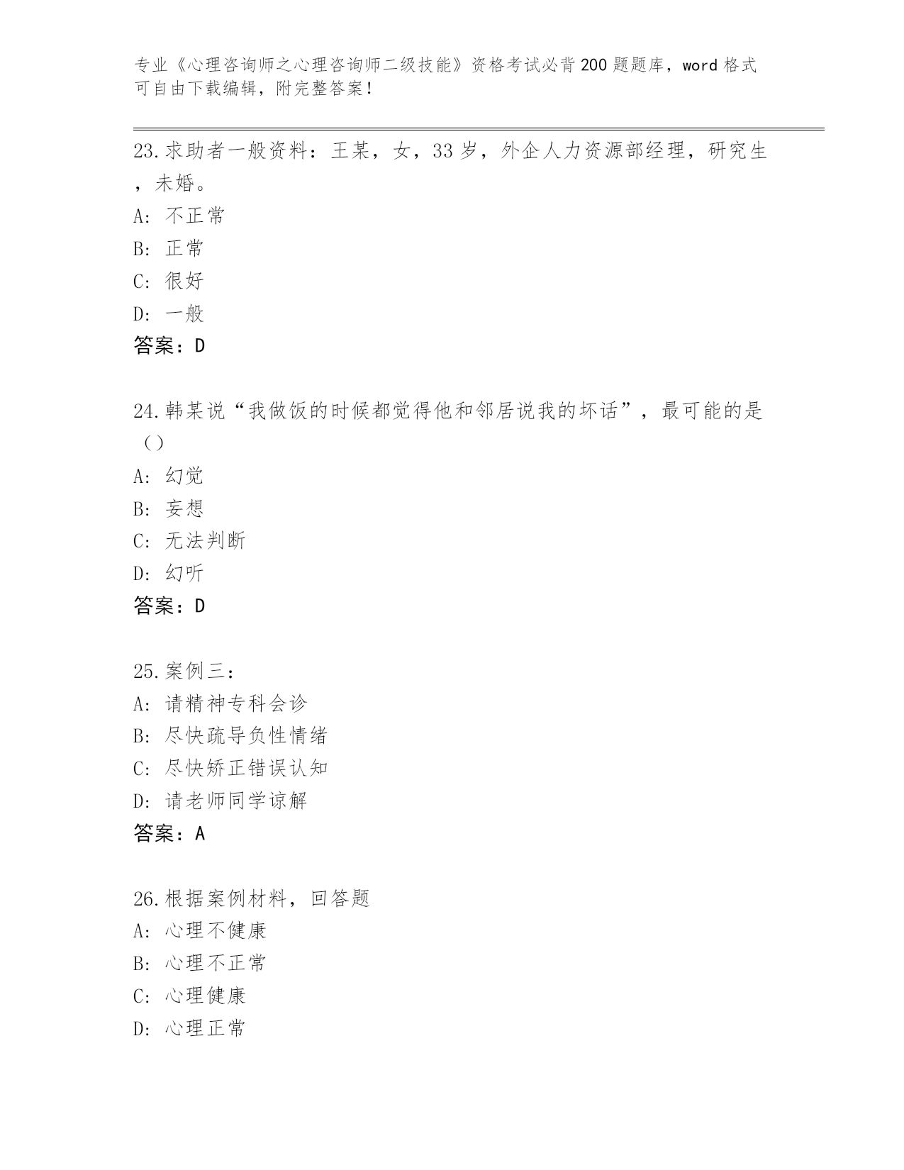 河南省范县2024《心理咨询师之心理咨询师二级技能》资格考试必背200题内部题库附答案(典型题)