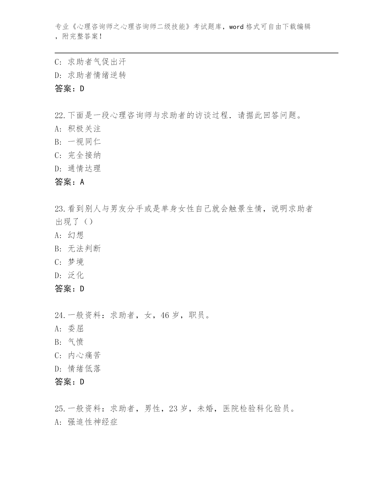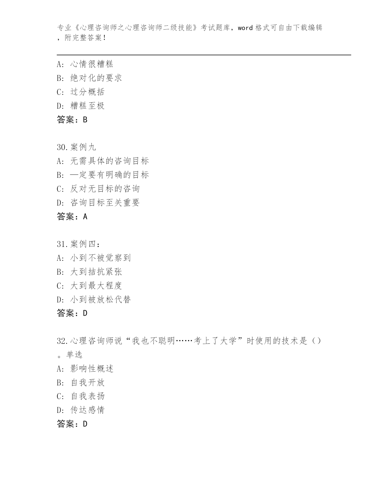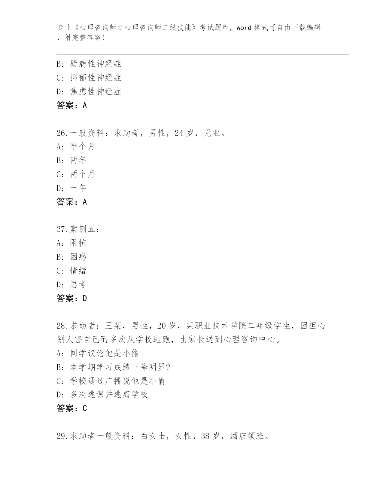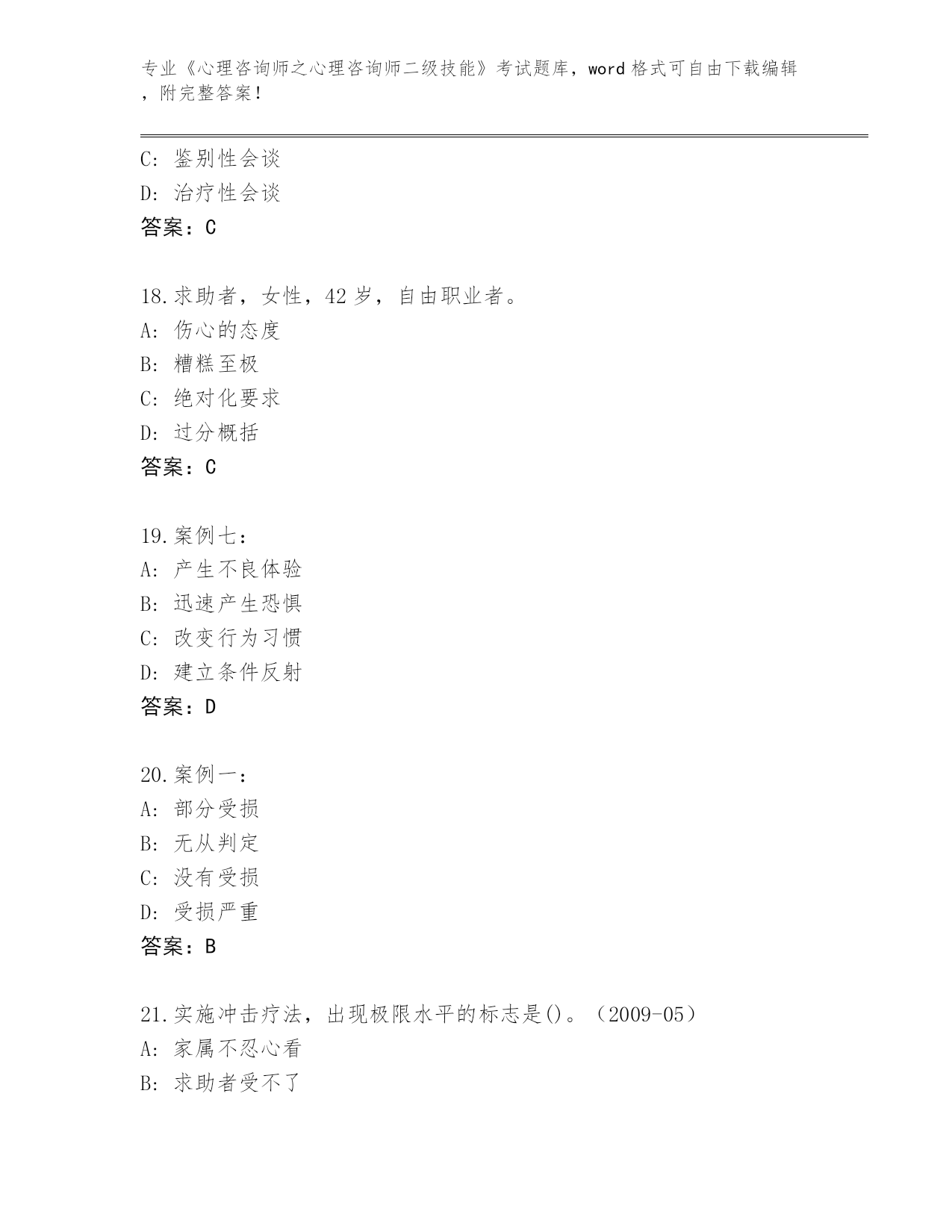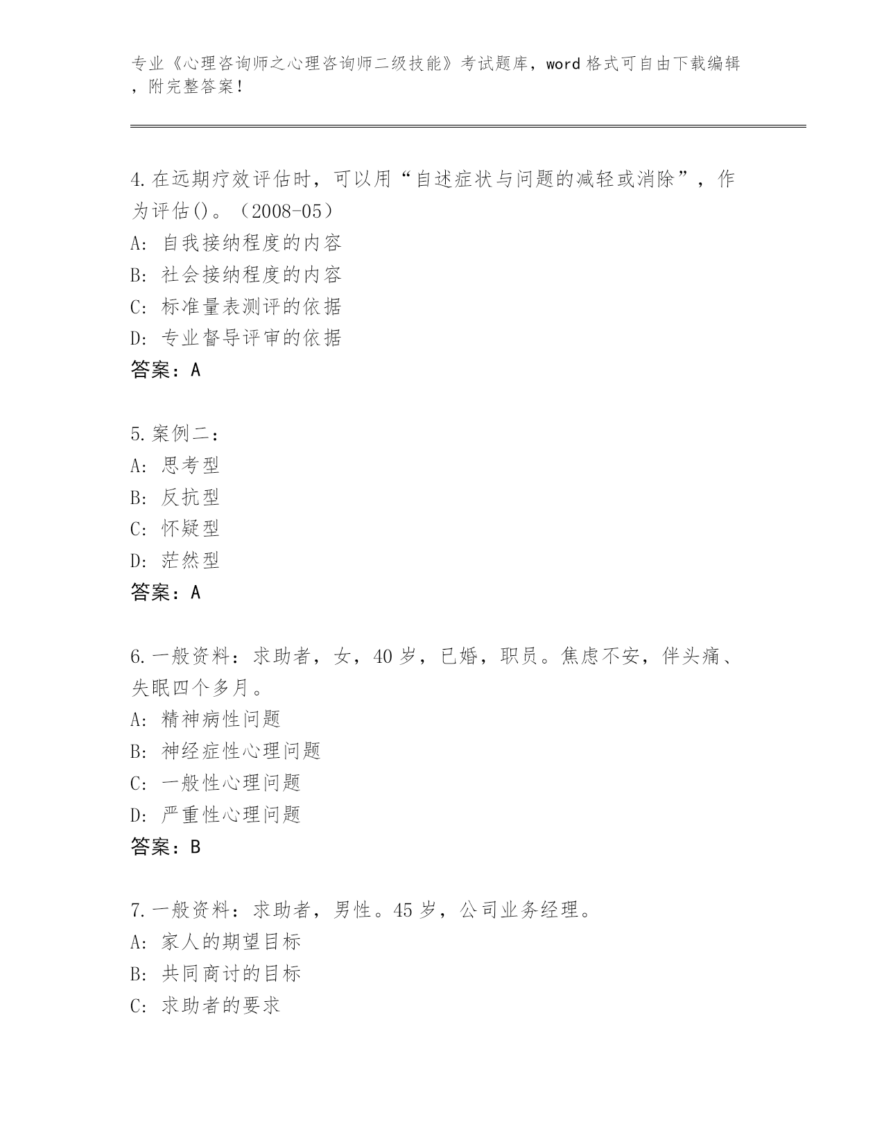 整理安徽省黟县《心理咨询师之心理咨询师二级技能》考试内部题库答案下载