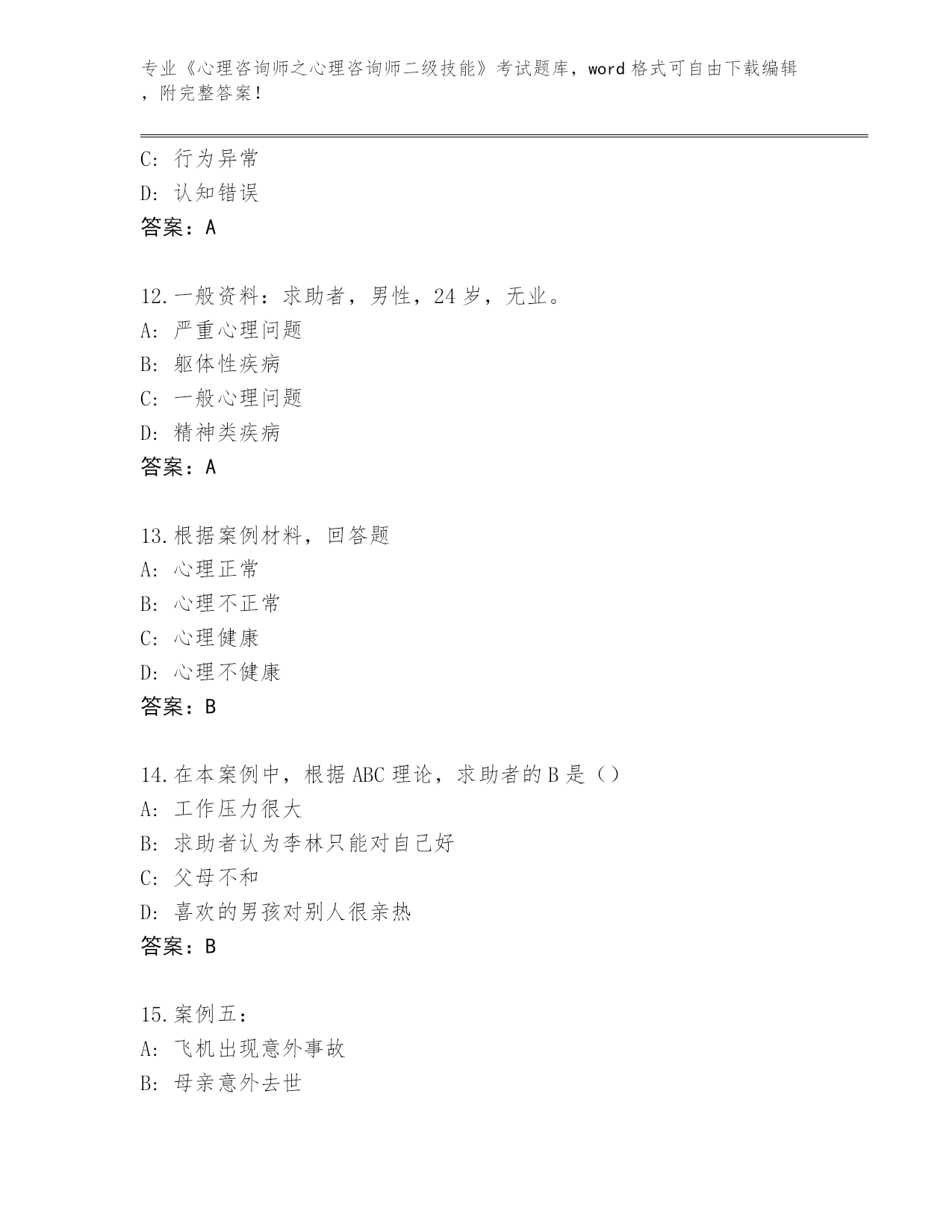 重庆市铜梁区2024年《心理咨询师之心理咨询师二级技能》考试真题及答案下载