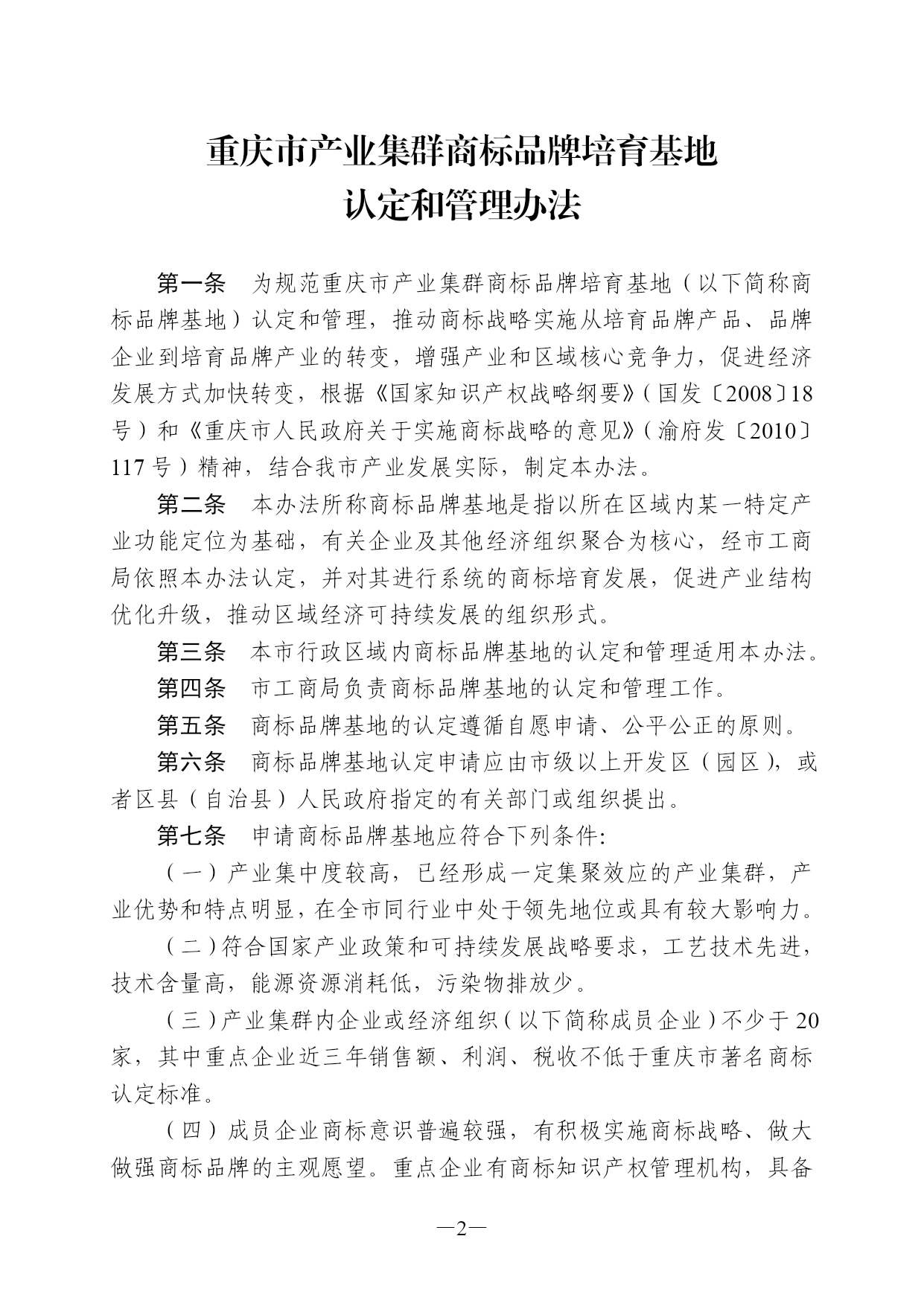 重庆市产业集群商标品牌培育基地认定和管理办法.doc