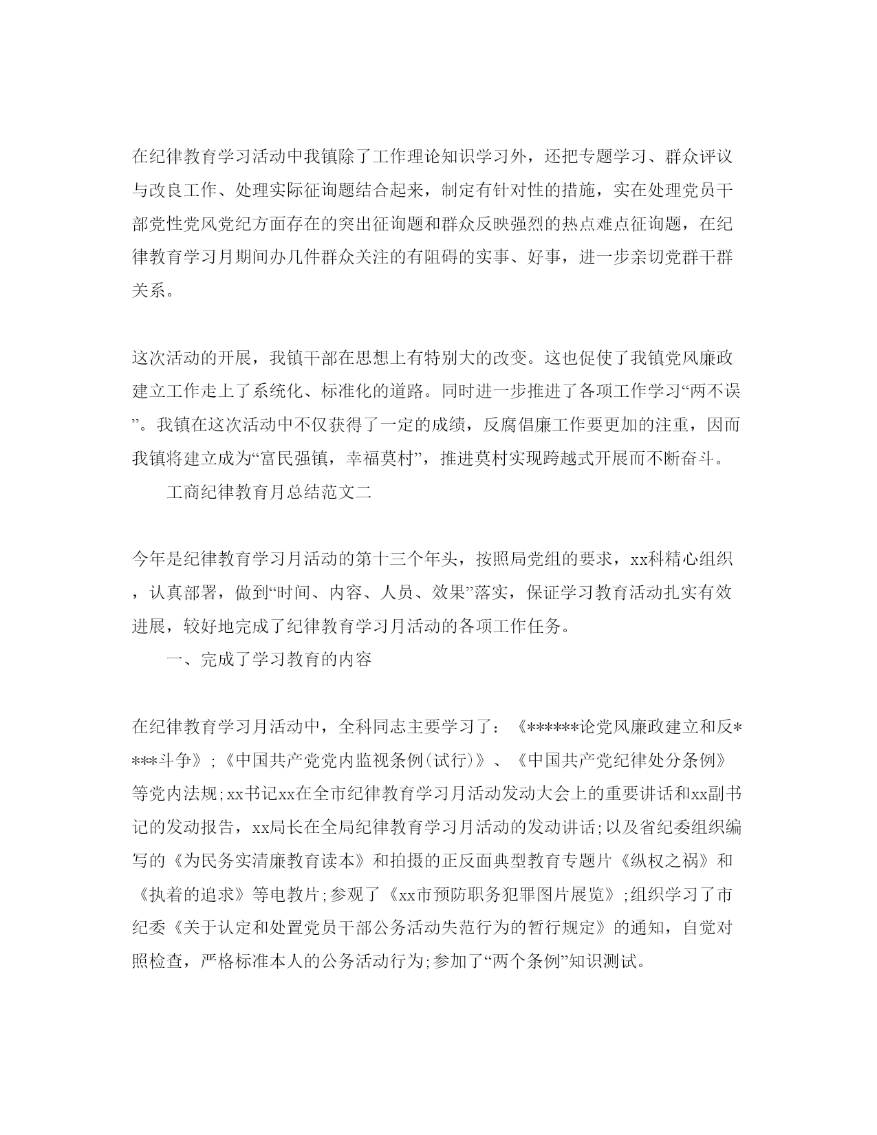 2022年工商纪律教育月参考总结